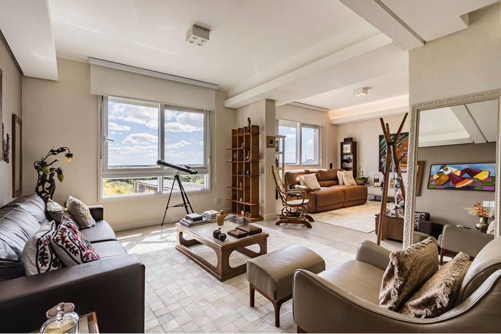 De frente a fundos, este apartamento entrega vistas panorâmicas raras: de um lado, o pôr do sol no Guaíba e o Parque Marinha; do outro, a tranquilidade do bairro Praia de Belas.