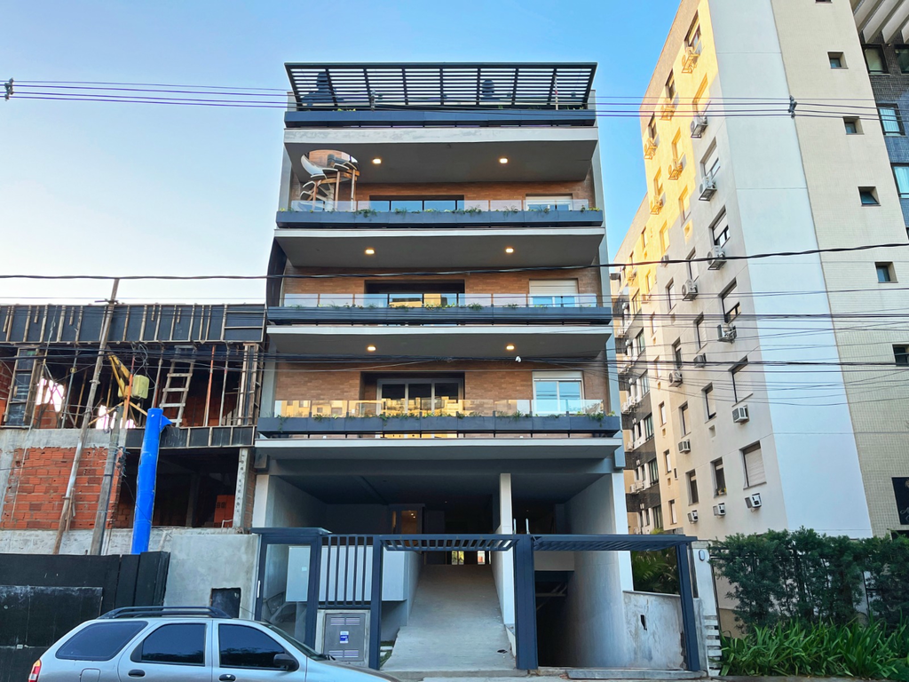 Unidade 502: 2 Dorms com Rooftop; 112,46 m² privativos; Terraço de 36,08 m²; Suíte; Cozinha com churrasqueira; 2 vagas cobertas lado a lado.