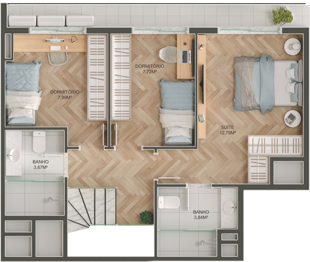 • 3 Quartos