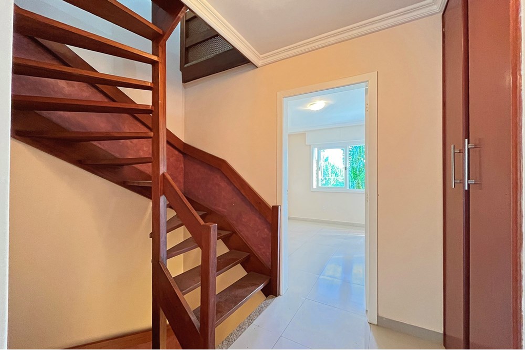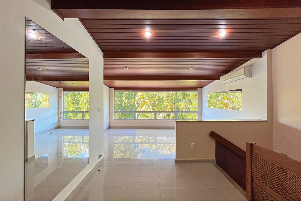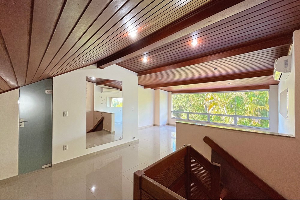 Subindo para o segundo piso, a luz natural inunda duas suítes espaçosas e arejadas, pensadas para o seu máximo conforto. Uma delas é um verdadeiro oásis, com um closet dos sonhos e uma varanda privativa para você relaxar. A outra suíte te surpreende com uma área externa espetacular, ideal para desfrutar de um bom livro ou um café da manhã ao ar livre.