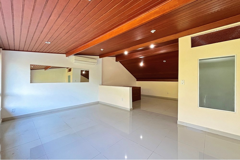 E o que dizer do sótão? Prepare-se para se maravilhar com um ambiente amplo, iluminado e arejado, que já conta com um banheiro completo. Neste ambiente existem diversas possibilidades: uma aconchegante sala de tv, seu novo escritório, um estúdio criativo, ou quem sabe, um terceiro dormitório com suíte, perfeito para receber visitas ou expandir sua família.