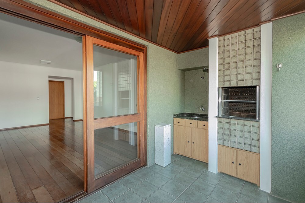 O acabamento do apartamento é de qualidade, com pisos em cerâmica, madeira e pastilhas.