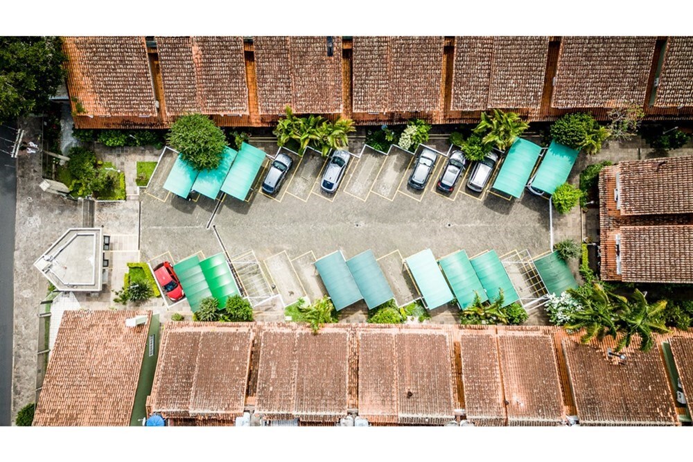 A casa possui vaga escriturada para um veículo e o condomínio com poucas casas e com um jardim com plantas e flores deixam esse imóvel encantador.