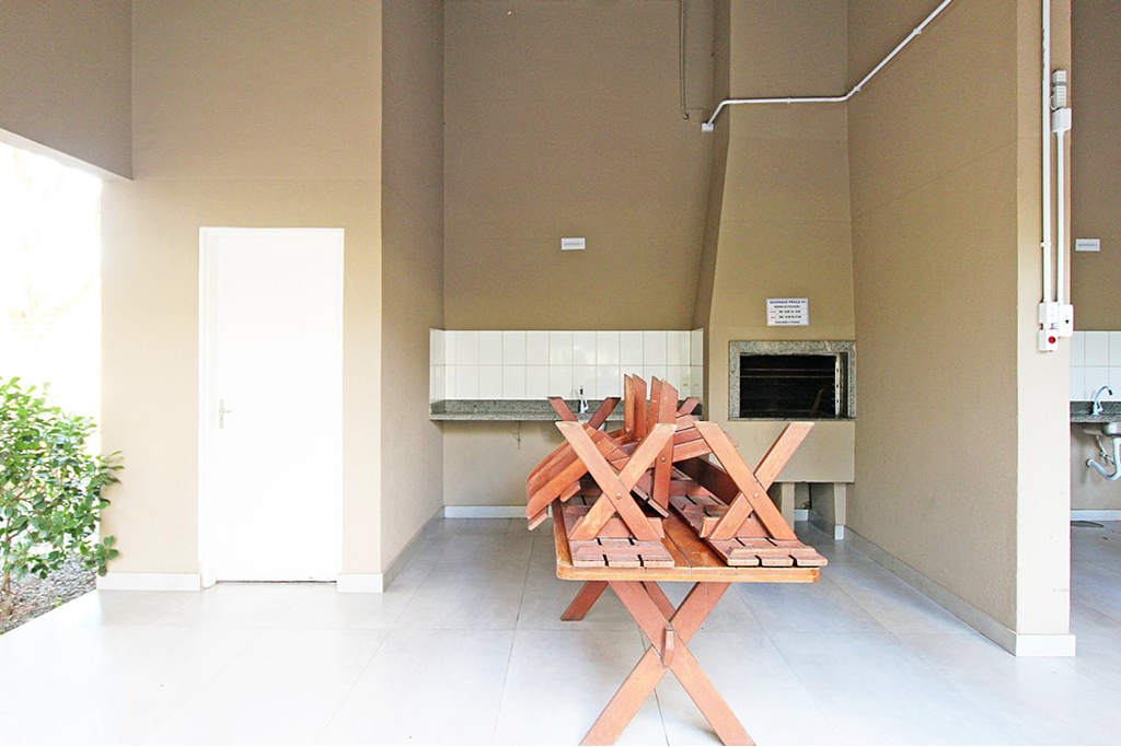 O condomínio oferece infraestrutura completa com portaria 24h, piscina, academia, salão de festas e quiosque com churrasqueira.