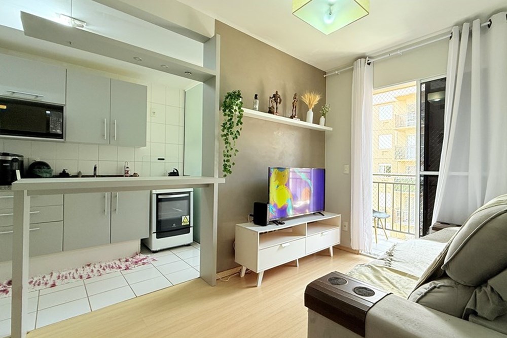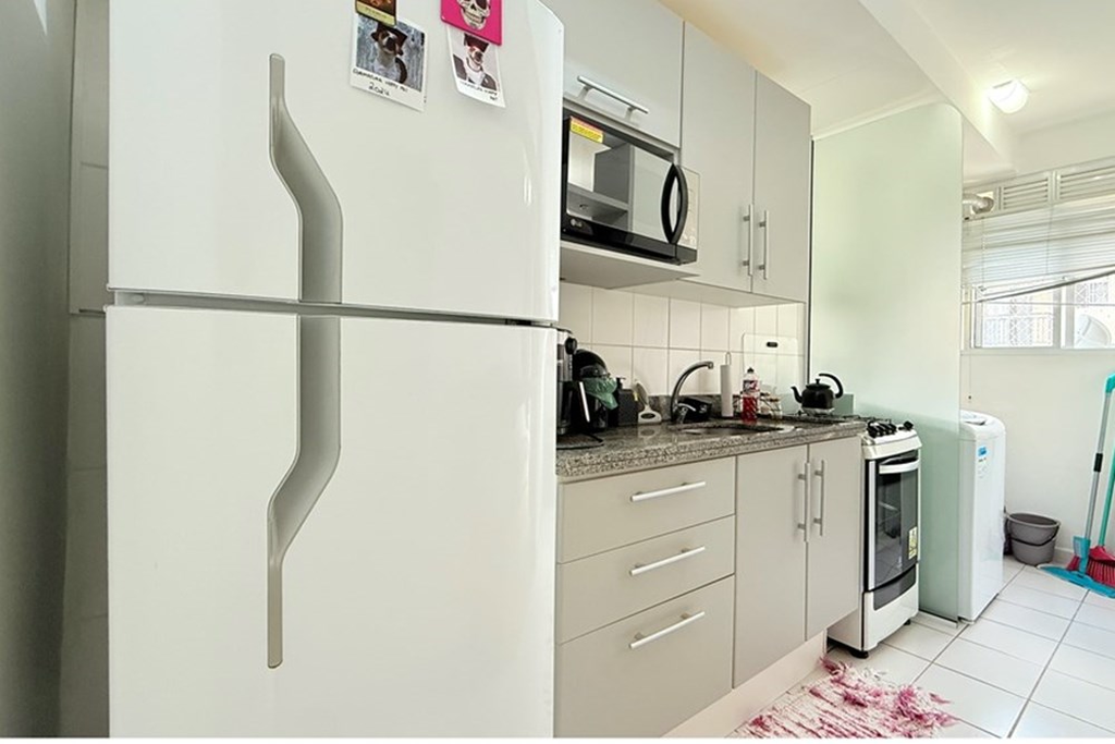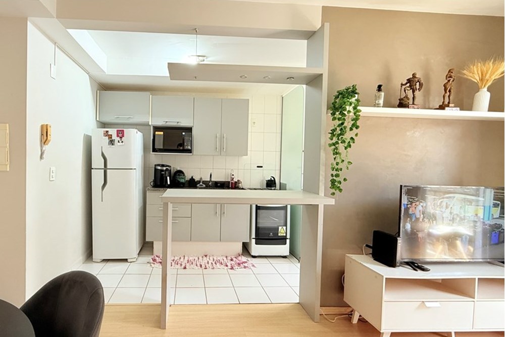 O imóvel conta com cozinha mobiliada e vaga de garagem descoberta.