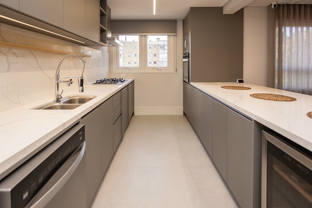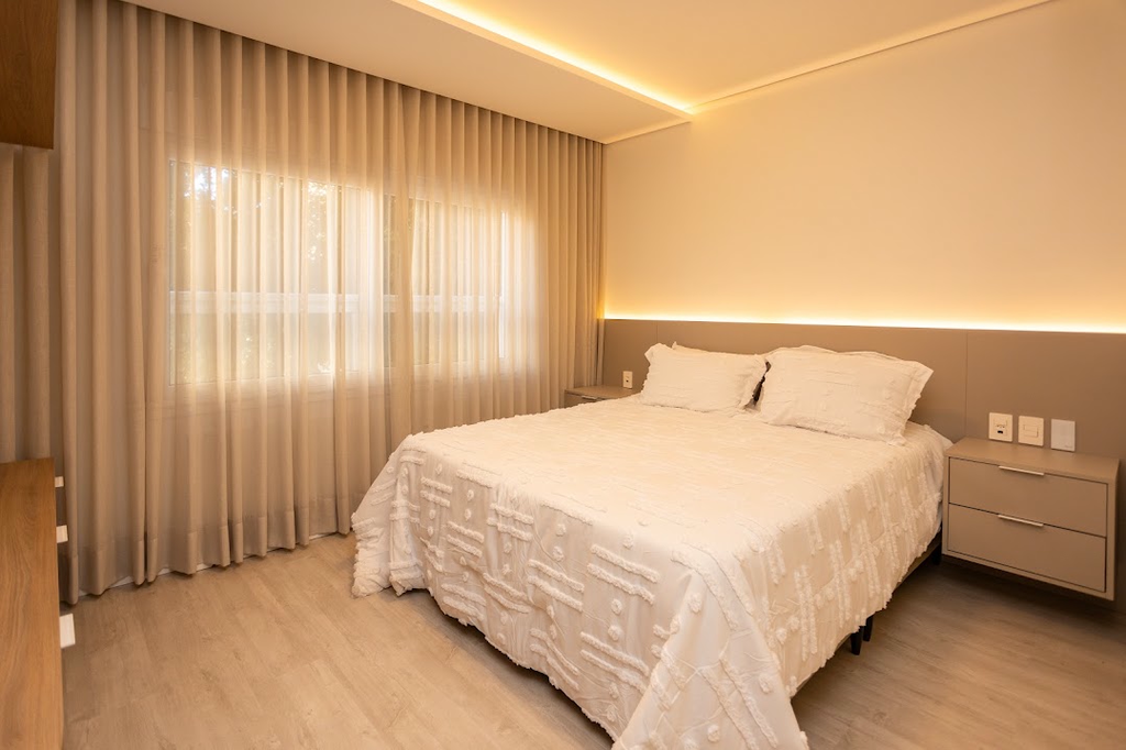 Formas simétricas, fachadas revestidas com pastilhas, living e dormitórios com vidros duplos e um hall com pé-direito duplo desafiam os limites da imaginação arquitetônica envolvendo ambientes aconchegantes e convidativos, onde o bom gosto se sente à vontade.