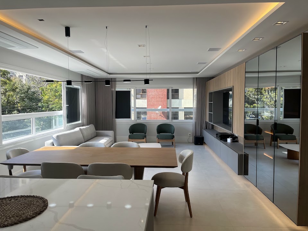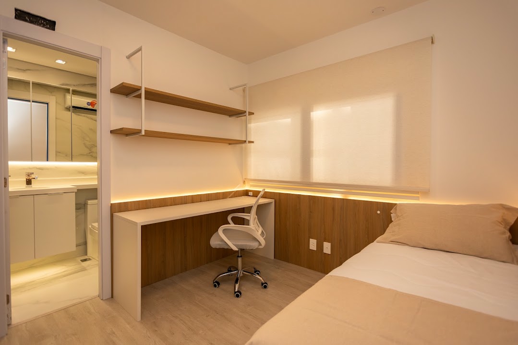 Formas simétricas, fachadas revestidas com pastilhas, living e dormitórios com vidros duplos e um hall com pé-direito duplo desafiam os limites da imaginação arquitetônica envolvendo ambientes aconchegantes e convidativos, onde o bom gosto se sente à vontade.