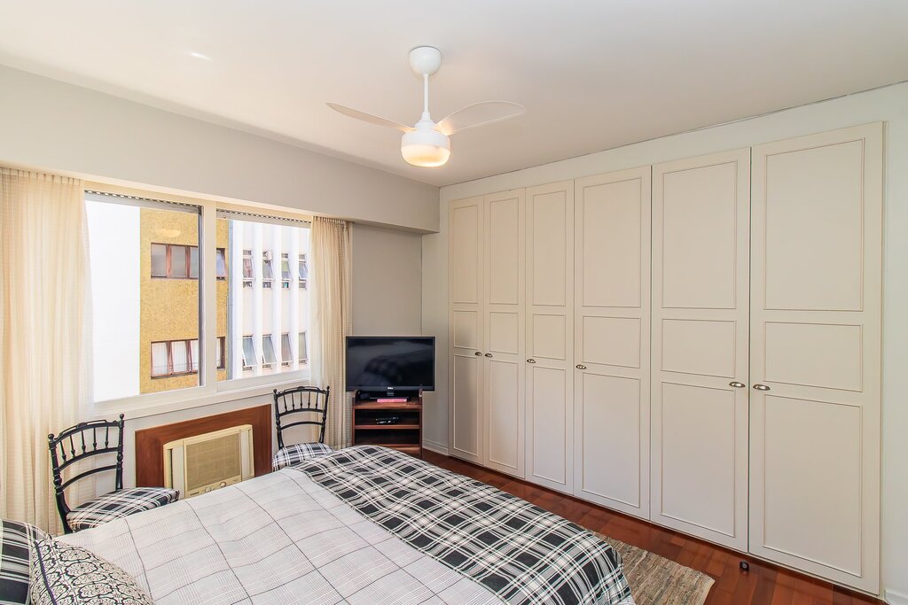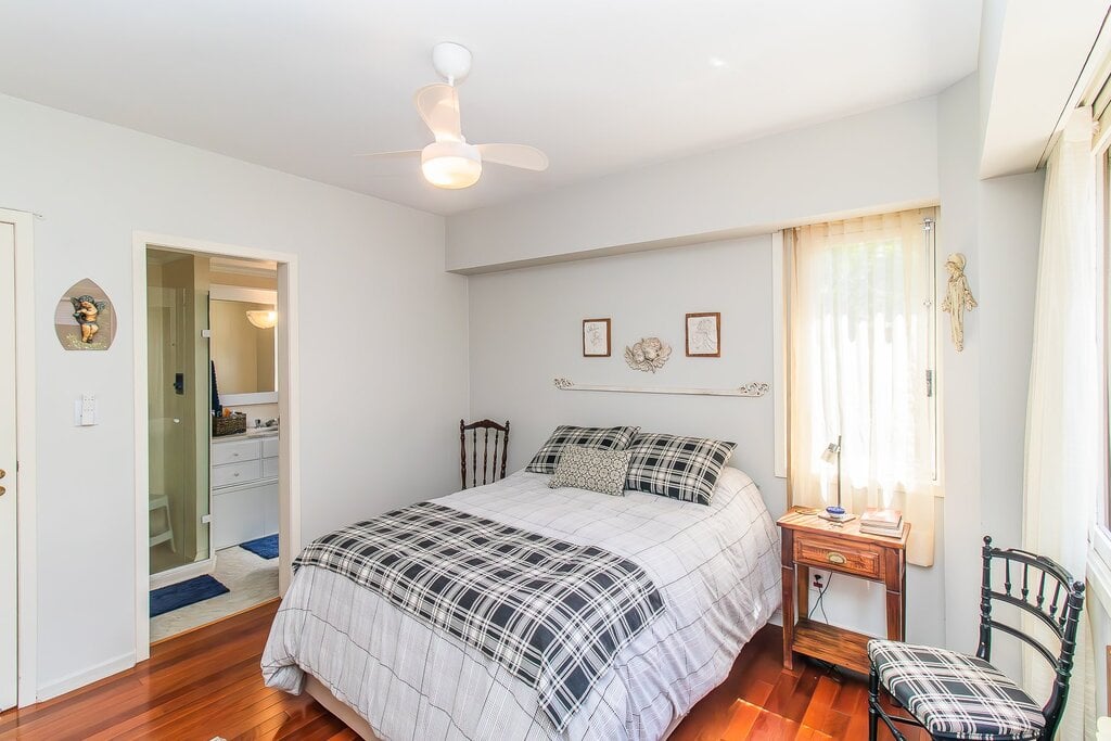 A suíte principal é um verdadeiro refúgio, com um armário de 6 portas que oferece espaço de sobra para suas roupas e acessórios.