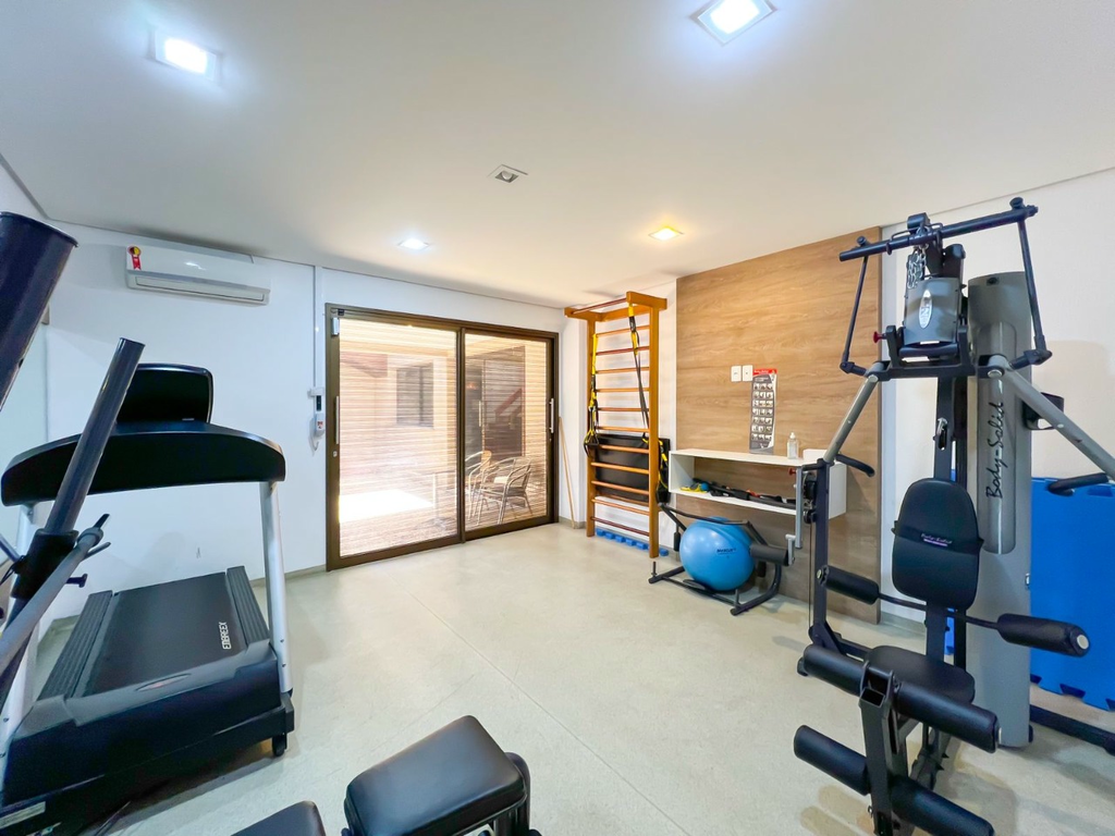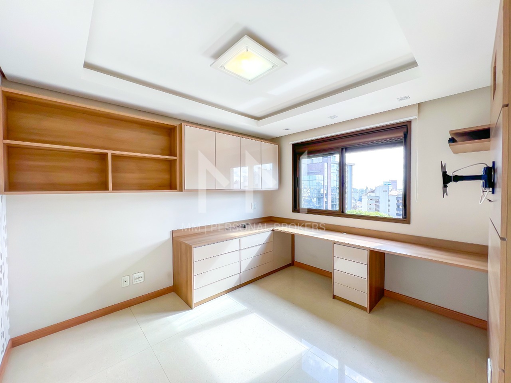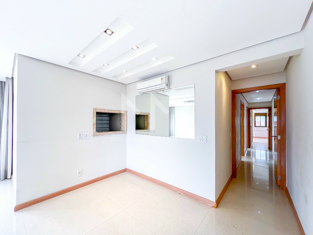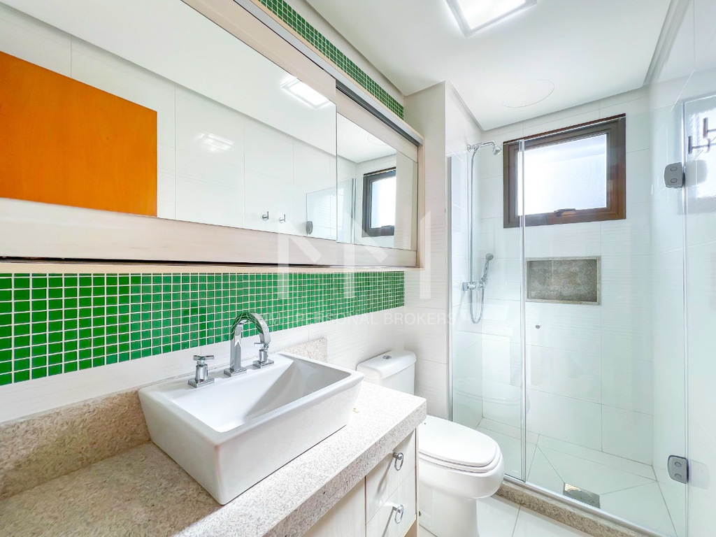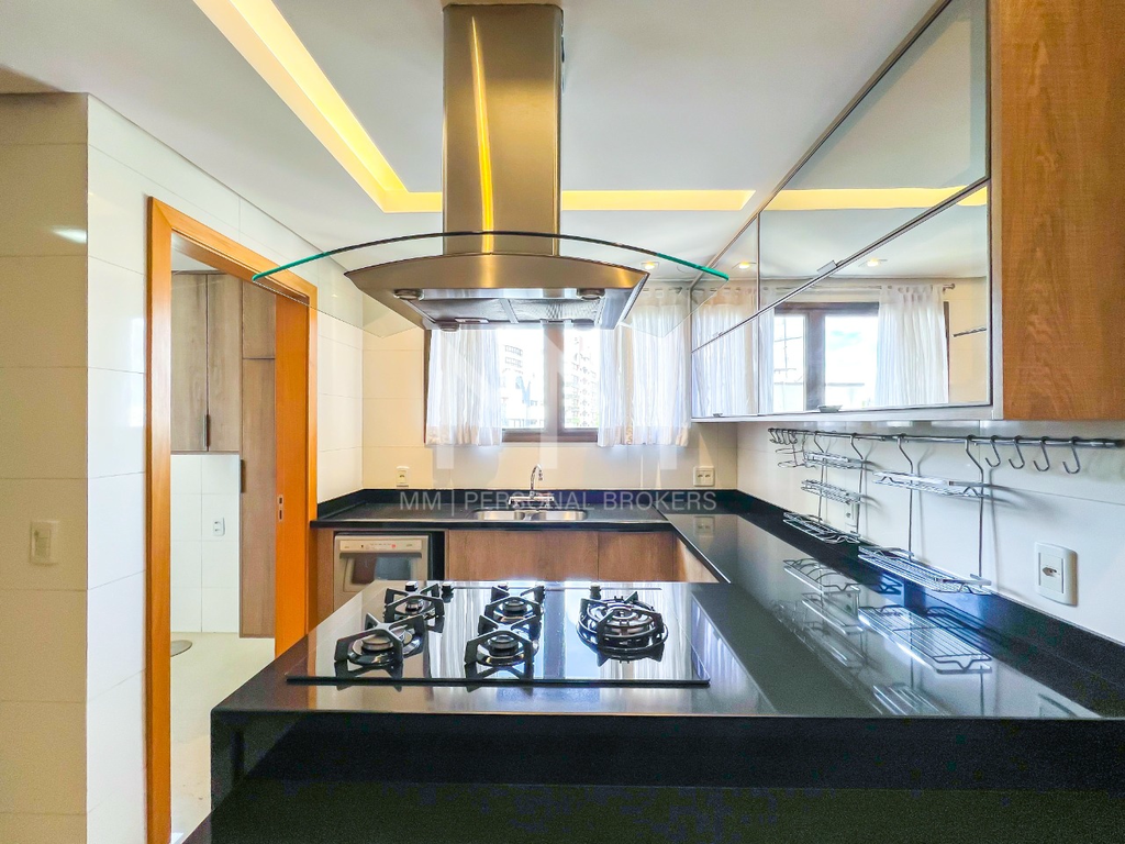 São 160m² distribuidos em 3 suítes, a master com closet. Living para 3 ambientes com lareira e churrasqueira convencionais, lavabo com ventilação natural, copa-cozinha montada, área de serviço separada e wc auxiliar.