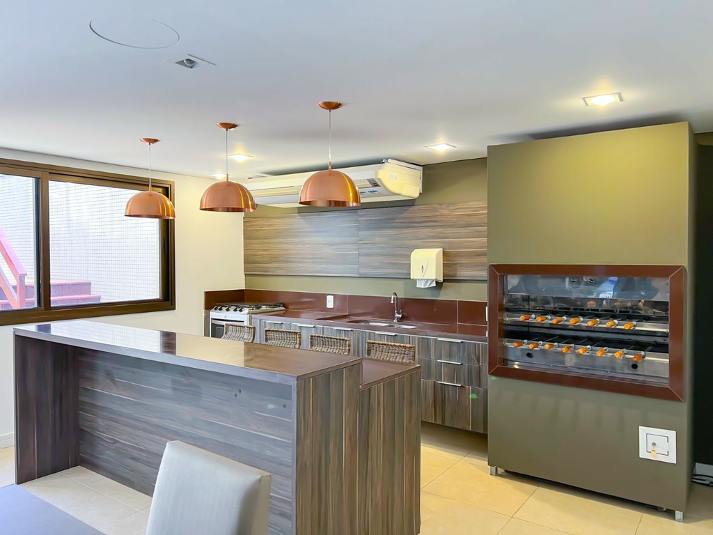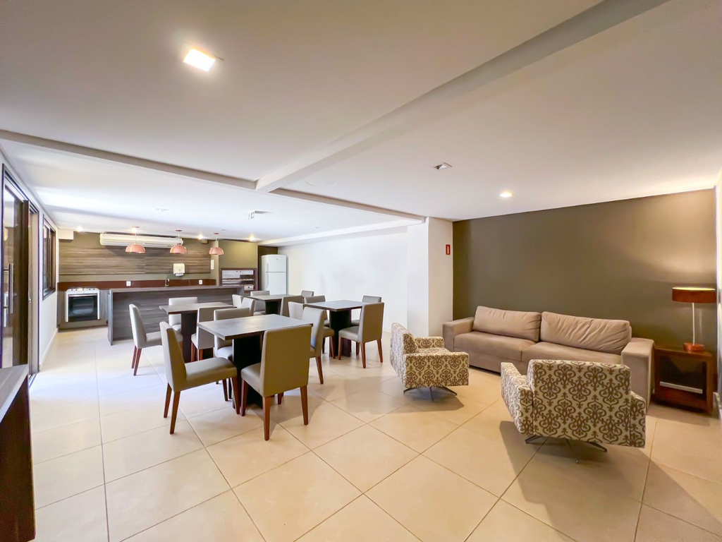 Edifício elegante com hall de entrada com pé direito duplo, fitness, salão de festas, play e piscina. 3 vagas de garagem individuais e 2 depósitos.