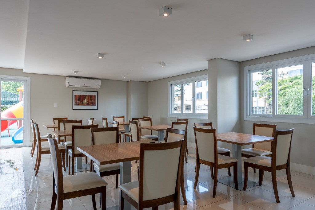 Imóvel com 76,69 m2 de área privativa, living dois ambientes com sacada ampla que vai da sala ao dormitório, cozinha americana com churrasqueira, área de serviço, 2 dormitórios, sendo uma suíte, banho social e vaga dupla.
