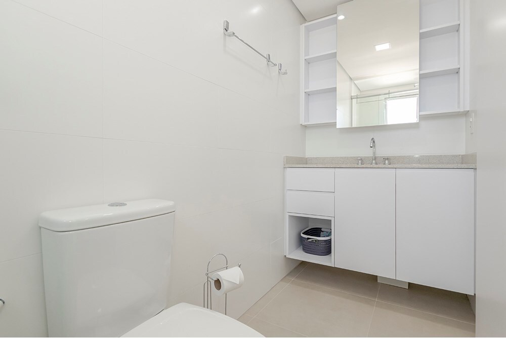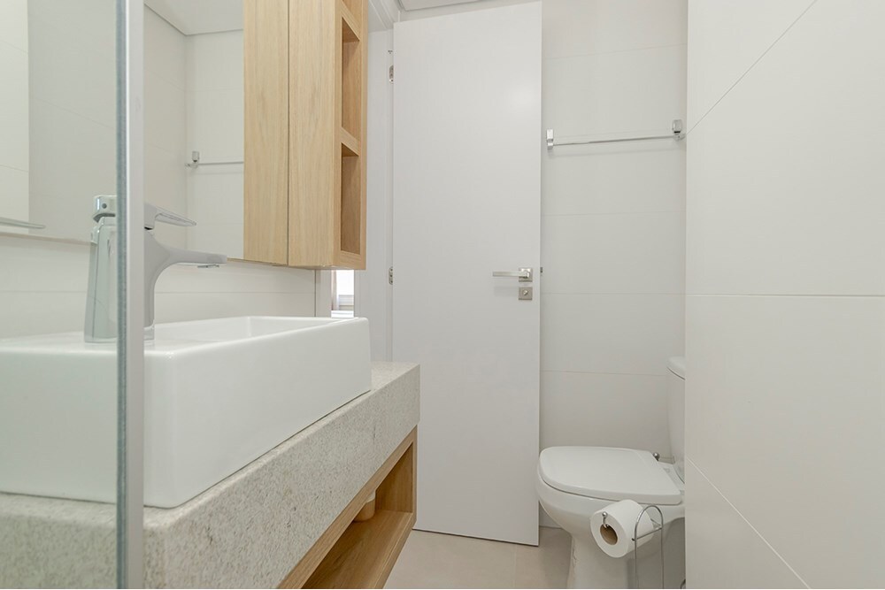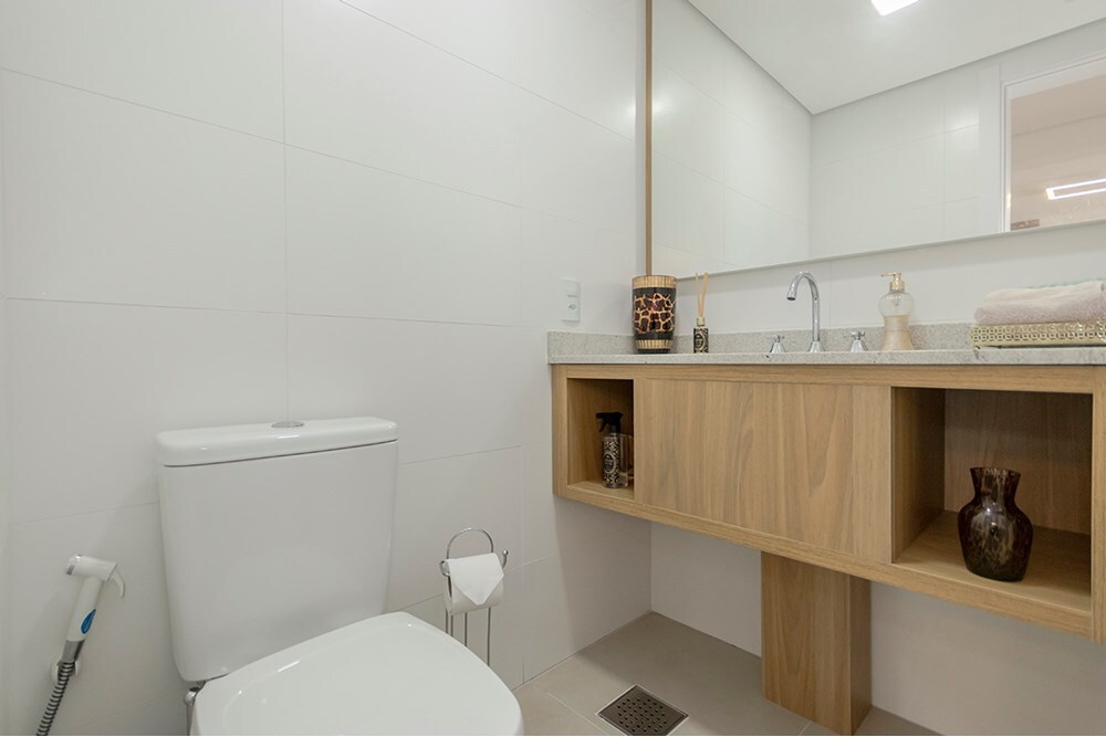 Composto por 3 dormitórios espaçosos e 3 banheiros modernos, mobiliado, incluindo um lavabo, este apartamento proporciona privacidade e funcionalidade para toda a família.