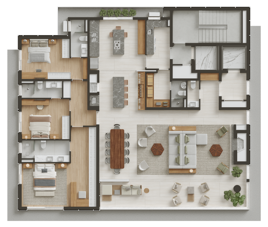 O Alameda Moinhos nasce sob o verde que compõe a rua que lhe dá acesso e encanta pela sua relação fluida com a calçada e as casas históricas restauradas.