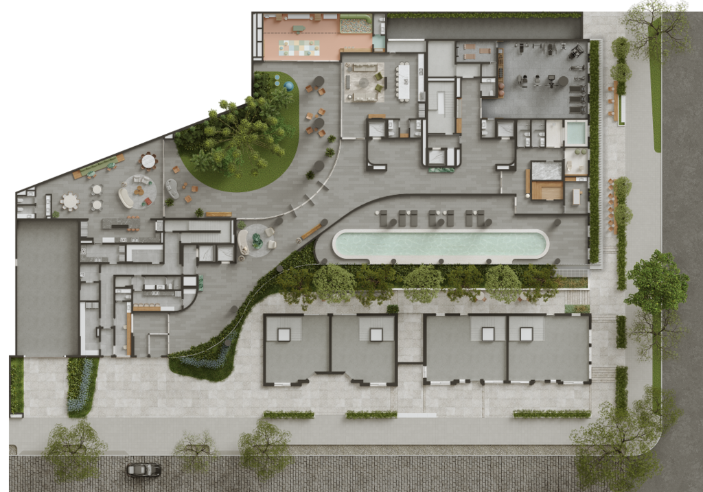 O Alameda Moinhos nasce sob o verde que compõe a rua que lhe dá acesso e encanta pela sua relação fluida com a calçada e as casas históricas restauradas.