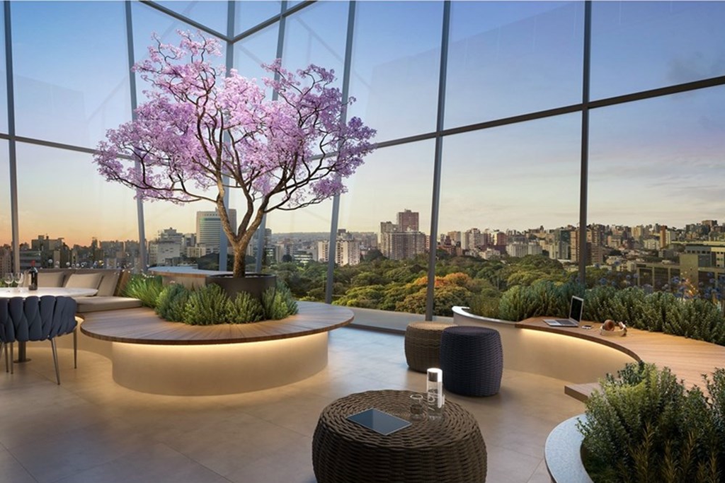 Ideal para quem tem uma rotina dinâmica e valoriza o convívio em espaços comuns do condomínio, o Skyglass oferece infraestrutura completa, lobby imponente, espaço fitness, delivery market, bicicletário, pet place, lavanderia e coworking, o rooftop é um verdadeiro refúgio urbano com lounge externo com paisagismo, salão de festas, espaço gourmet, pool house, piscina com deck molhado e o grande destaque Skyglass Lounge, um mirante envidraçado em formato de cubo com vista panorâmica para a cidade e o Parcão, criando uma verdadeira conexão entre arquitetura e natureza.
