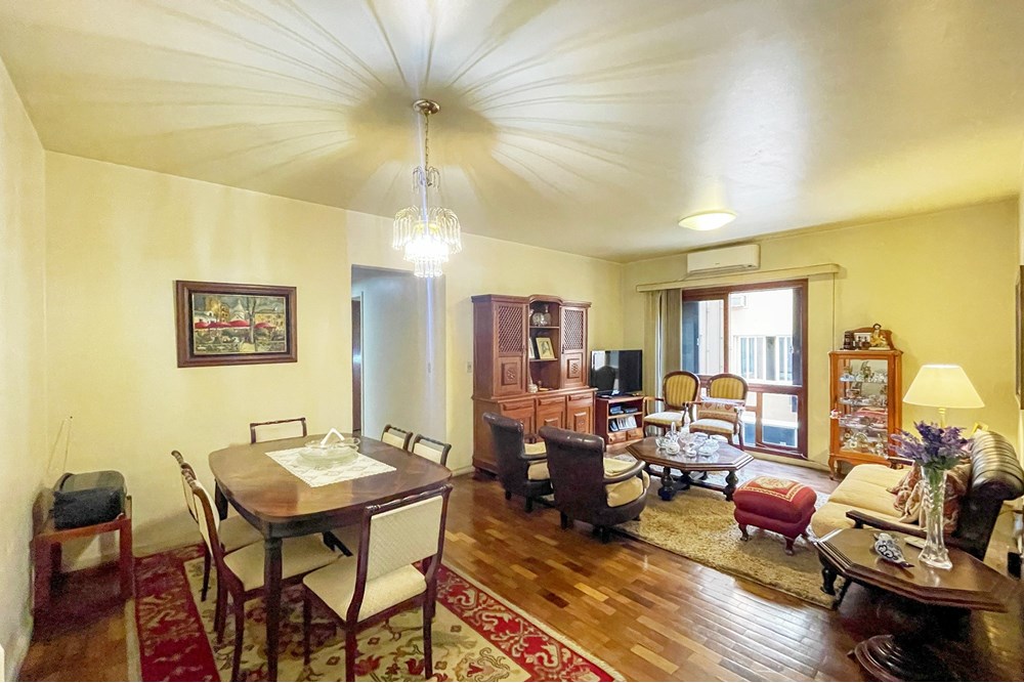 Apartamento de 3 dormitórios, sendo 1 suíte, 2 banheiros, cozinha, área de serviço separada e dependência de empregada com banheiro auxiliar, tudo isso em 115,09m² de área privativa.