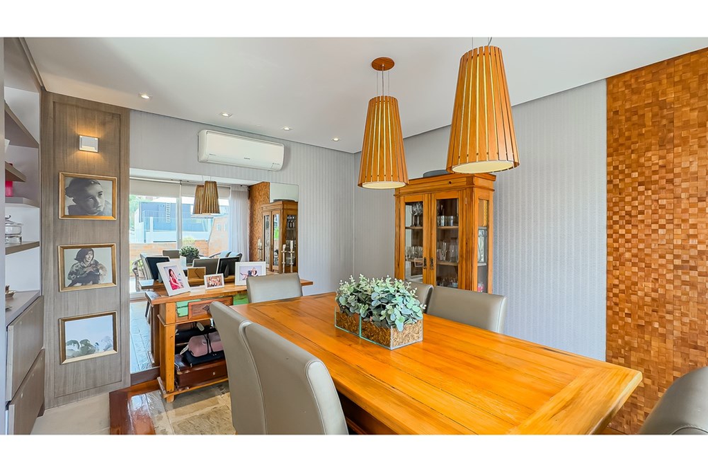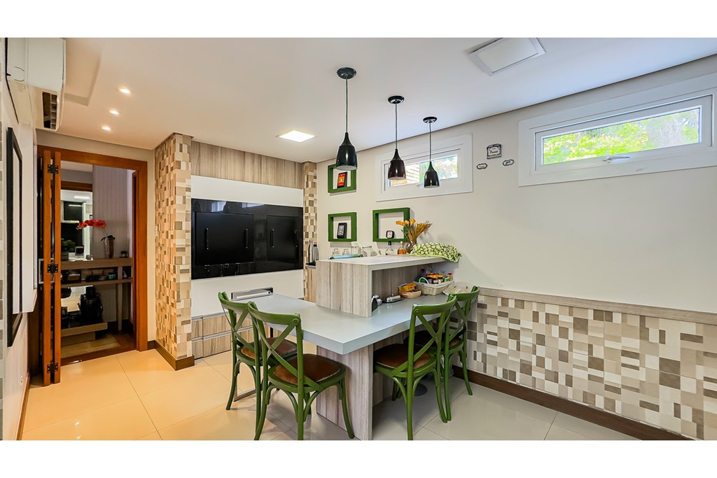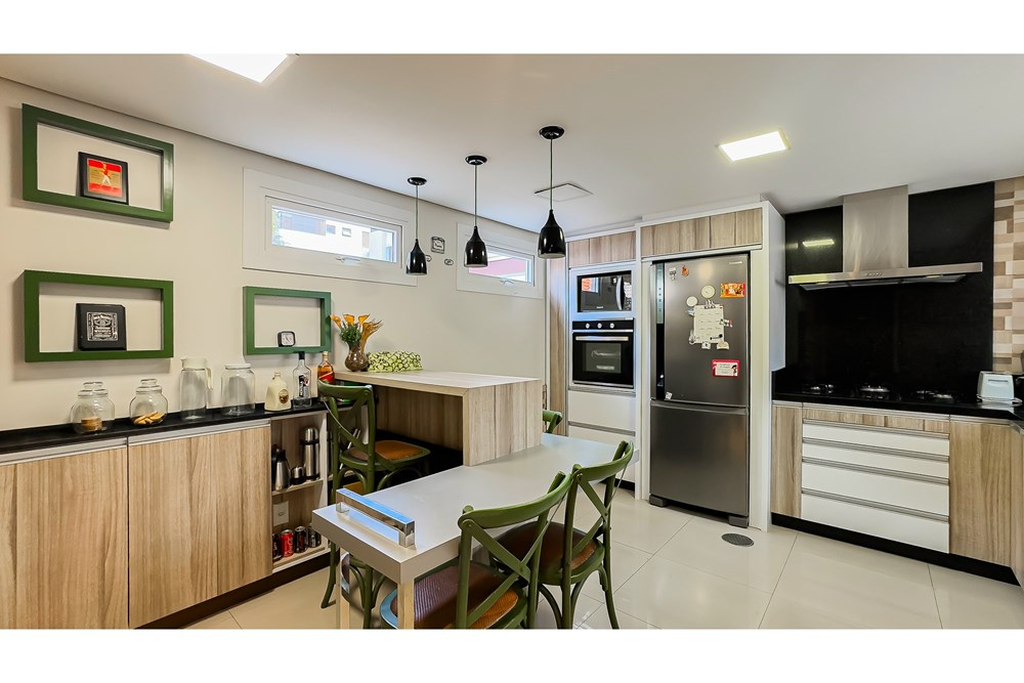 No pavimento superior, área social com churrasqueira, lavabo, uma sala da jantar para as festas de sua família, terraço aberto e uma cozinha maravilhosa feita sob medida.