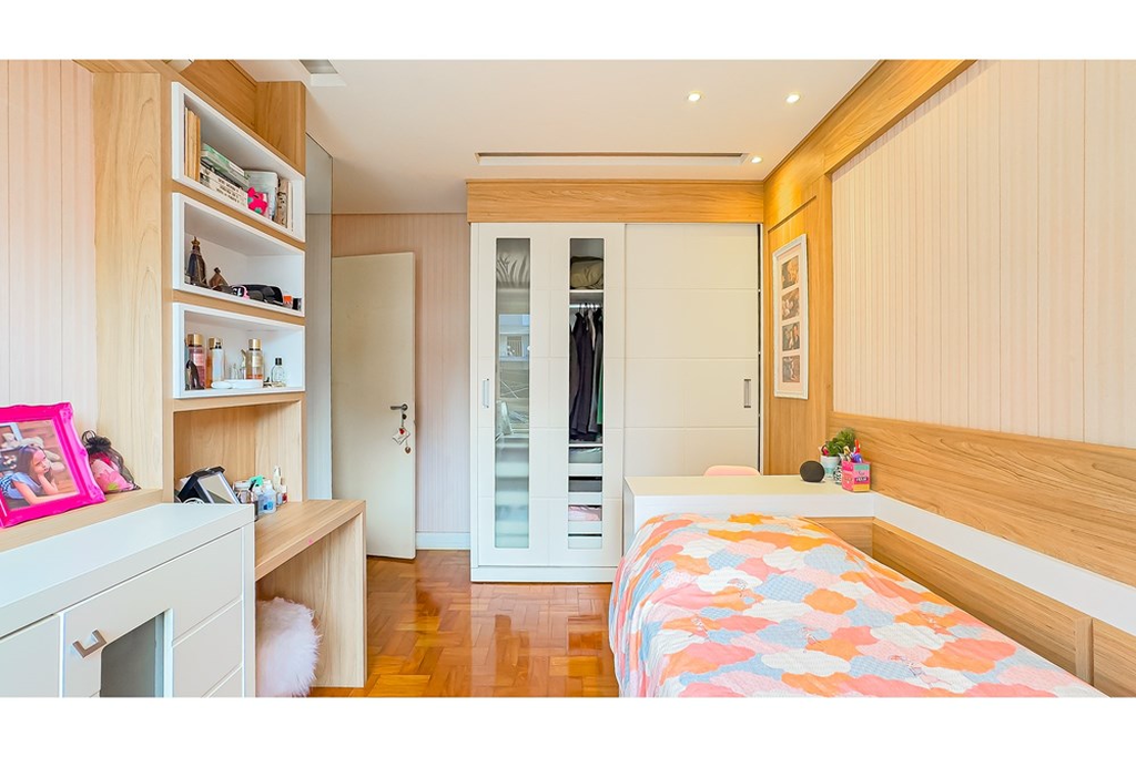No pavimento inferior: 3 dormitórios sendo 1 suíte, área de serviço com banheiro auxiliar e amplo e um escritório.
