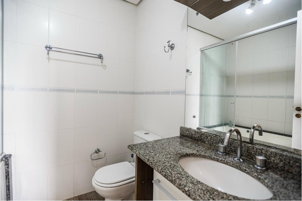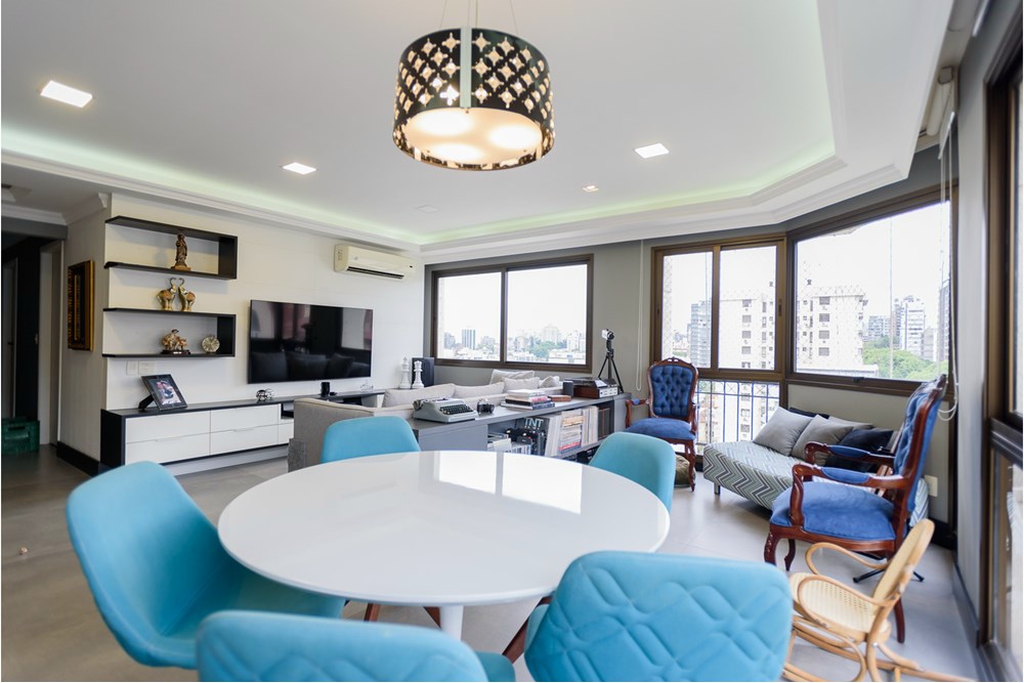 São 104m2 privativos, decorados com muito bom gosto. Uma vista panorâmica e perene, que permite ver todos os detalhes do bairro.