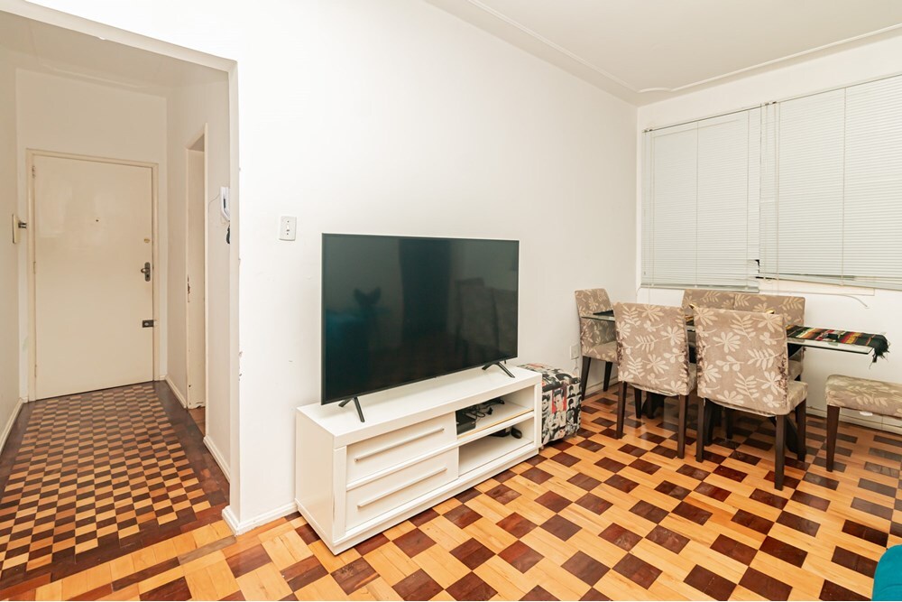 Apartamento de frente para a Eudoro Berlink, com vista arborizada. Em edifício tradicional da rua, com poucos moradores e baixo custo condominial - com taxas em torno de R$300,00 mensais e IPTU em 650,00 ao ano.