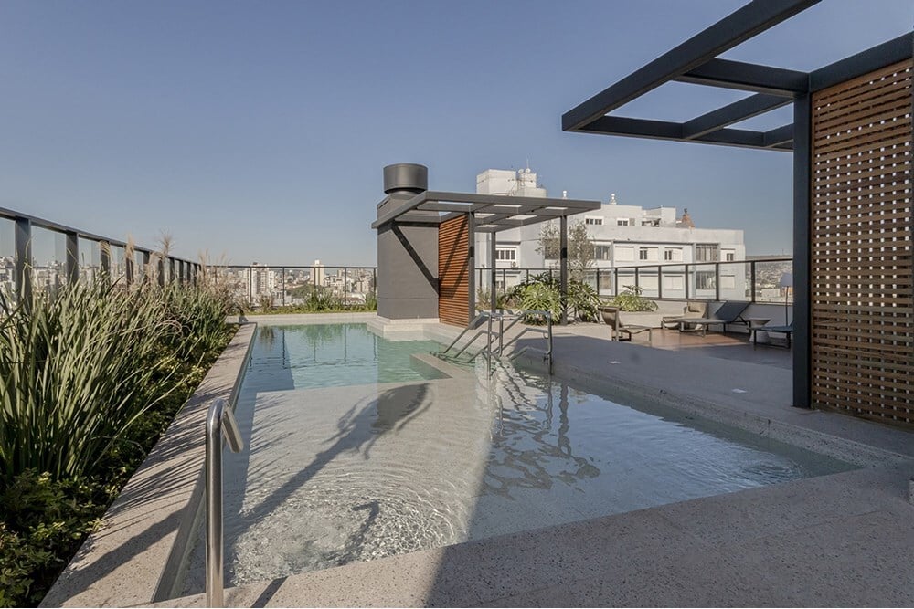 Imagine-se morando em um condomínio com piscina de borda infinita e academia com vista para o Guaíba, morando perto do Parque da Redenção.