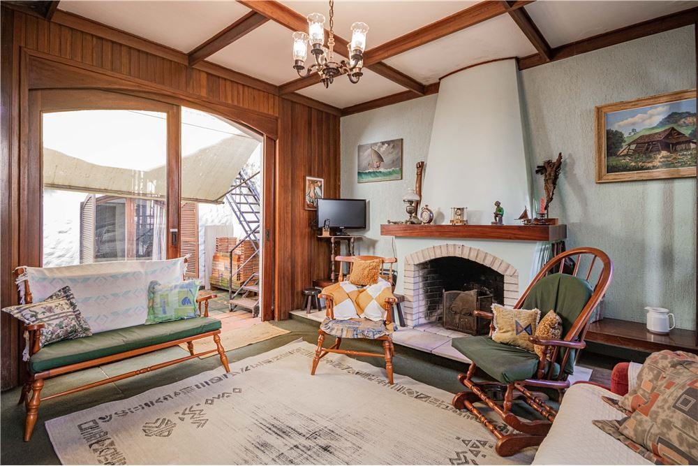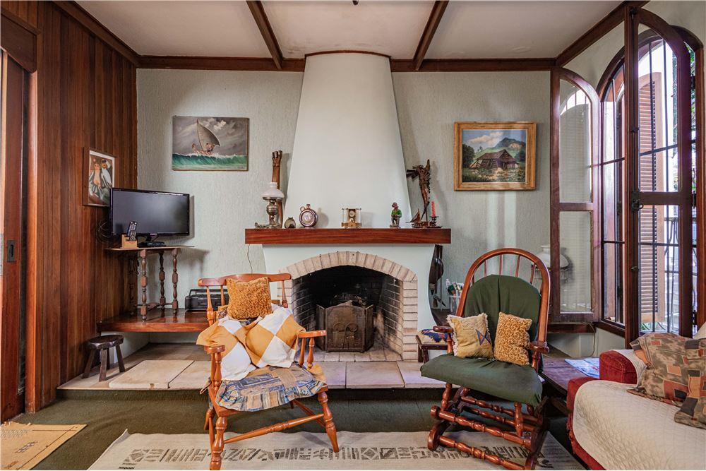 São 4 quartos com 2 suítes, 4 salas uma com lareira, 3 banheiros, 2 terraços um com 50 m² e outro com 20 m², depósito, lavanderia, 2 cozinhas, e mais uma edicula ao fundo com quarto banheiro e sala.