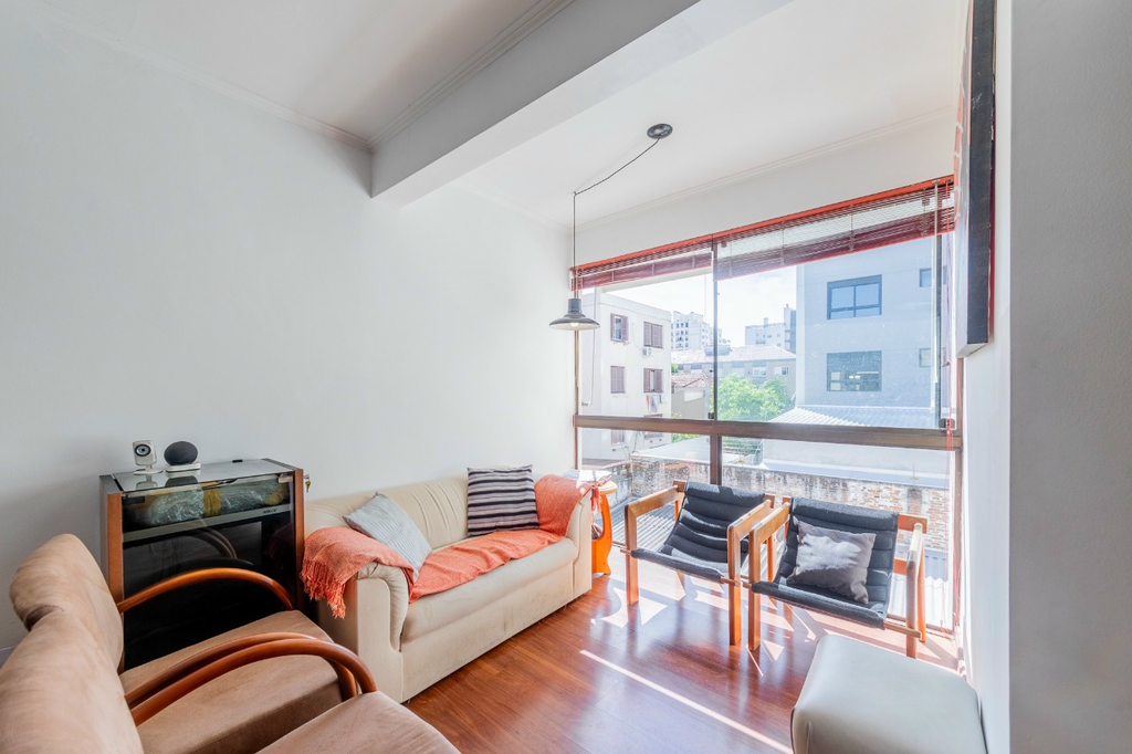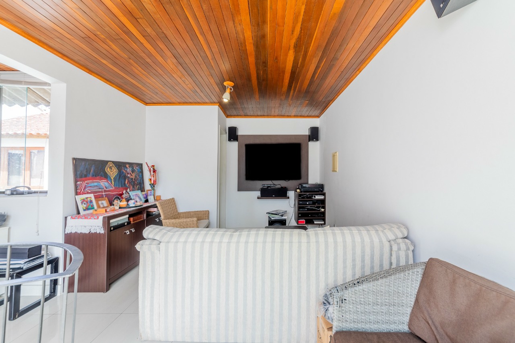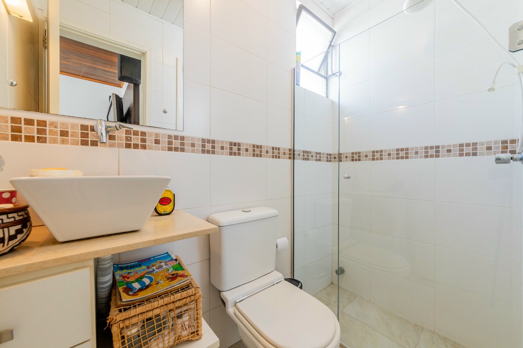 No primeiro pavimento, o imóvel abriga a área íntima, com 2 dormitórios, living para 2 ambientes com esquadria piso-teto e cozinha com área de serviço integrada, além de banheiro social.