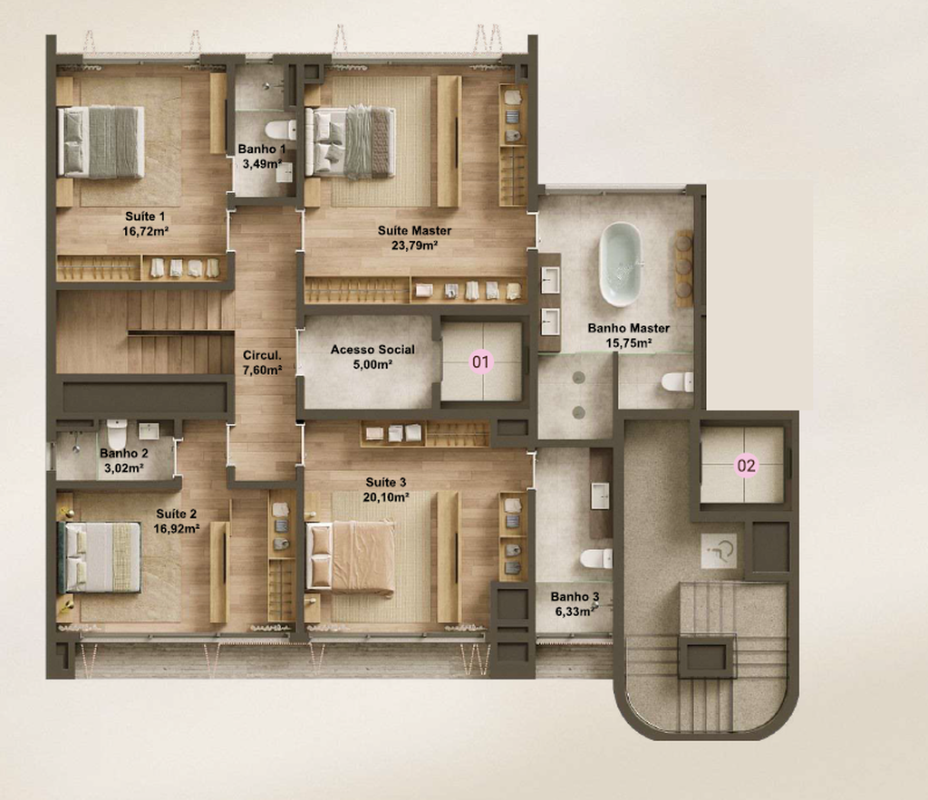 3 Suítes
