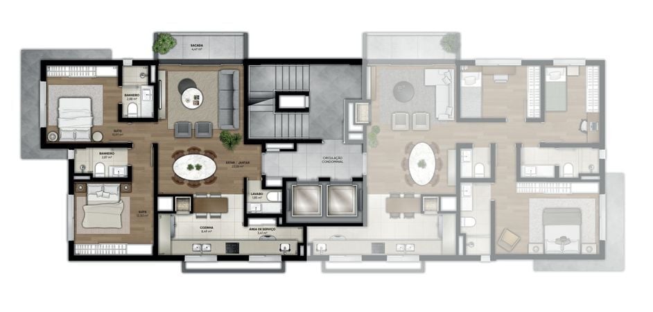 Apartamentos de 2 suítes ou 2 Dormitórios + 1 suíte, de 87,49m² a 191,84m².