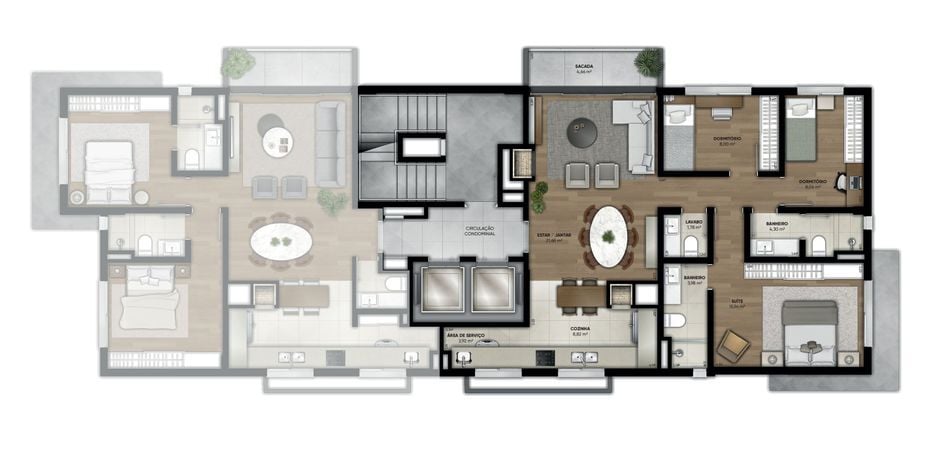 Apartamentos de 2 suítes ou 2 Dormitórios + 1 suíte, de 87,49m² a 191,84m².