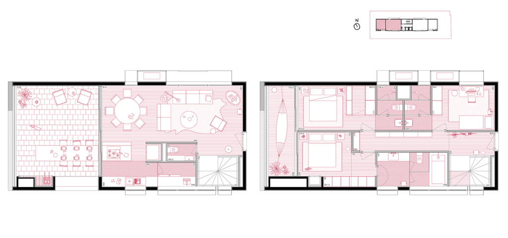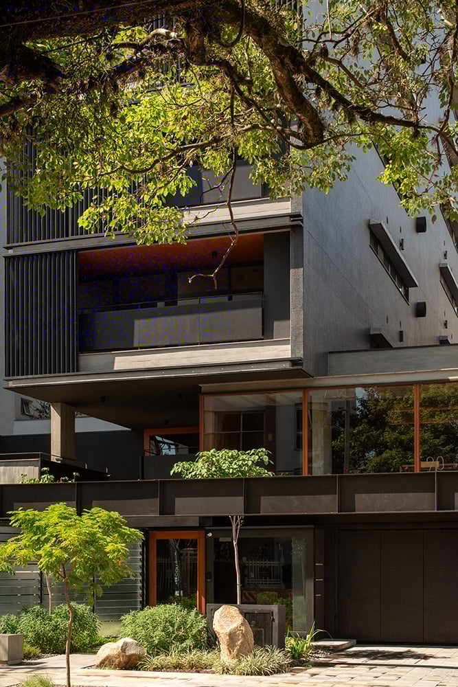 Os painéis móveis de brise permitem diferentes atmosferas no interior dos lares com uma fachada externa em constante movimento.