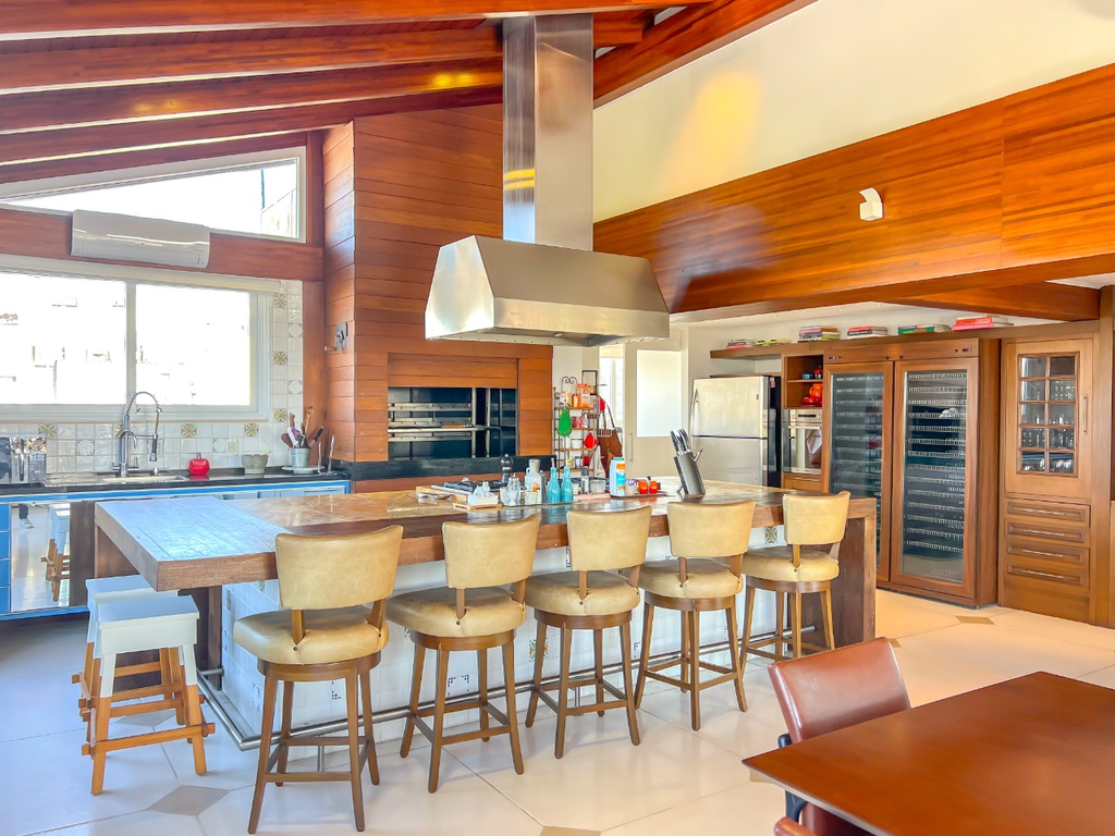 O segundo pavimento, conectado por uma moderna escada em mármore, surpreende com sua proposta contemporânea e acolhedora. Um espaço gourmet amplo, com acabamentos primorosos, churrasqueira, adega climatizada e pé-direito alto, convida a momentos memoráveis com amigos e família. Uma suíte privativa voltada para a varanda, escritório, outro lavabo, uma segunda lavanderia e um terraço em "U" banhado pelo sol, com vista panorâmica e pergolado para relaxamento, completam o andar superior com perfeição.