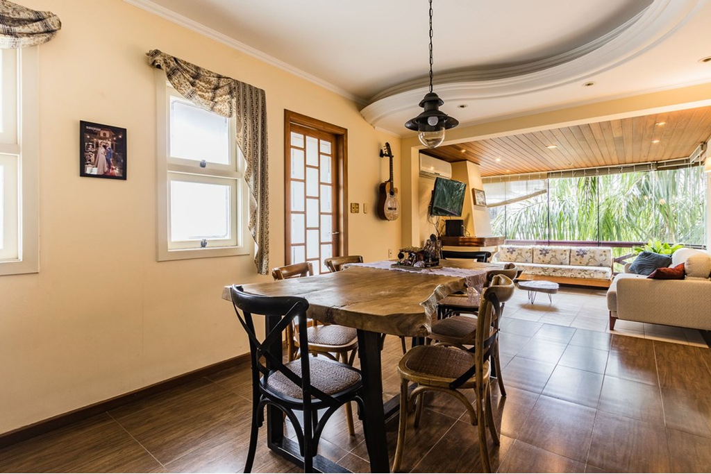 Excelente apartamento 126m² de area privativa, living com 2 ambientes, imponente lareira, area gourmet com churrasqueira e pia, 2 amplos dormitórios com sacada privativa, 1 suite, cozinha com móveis planejados, banheiro social, area de serviço individual, junker, dependência de empregada adaptada em escritório, banheiro auxiliar, piso cerâmico.