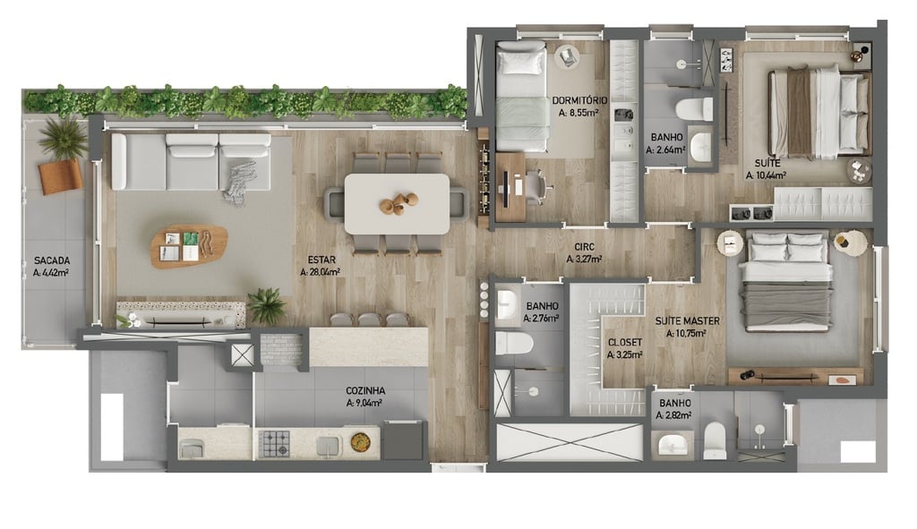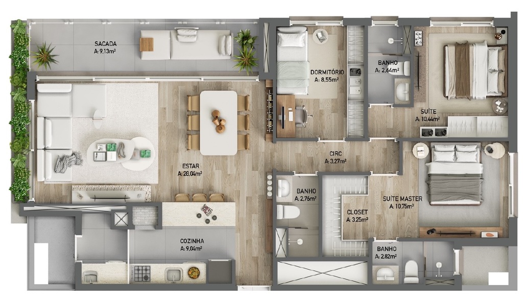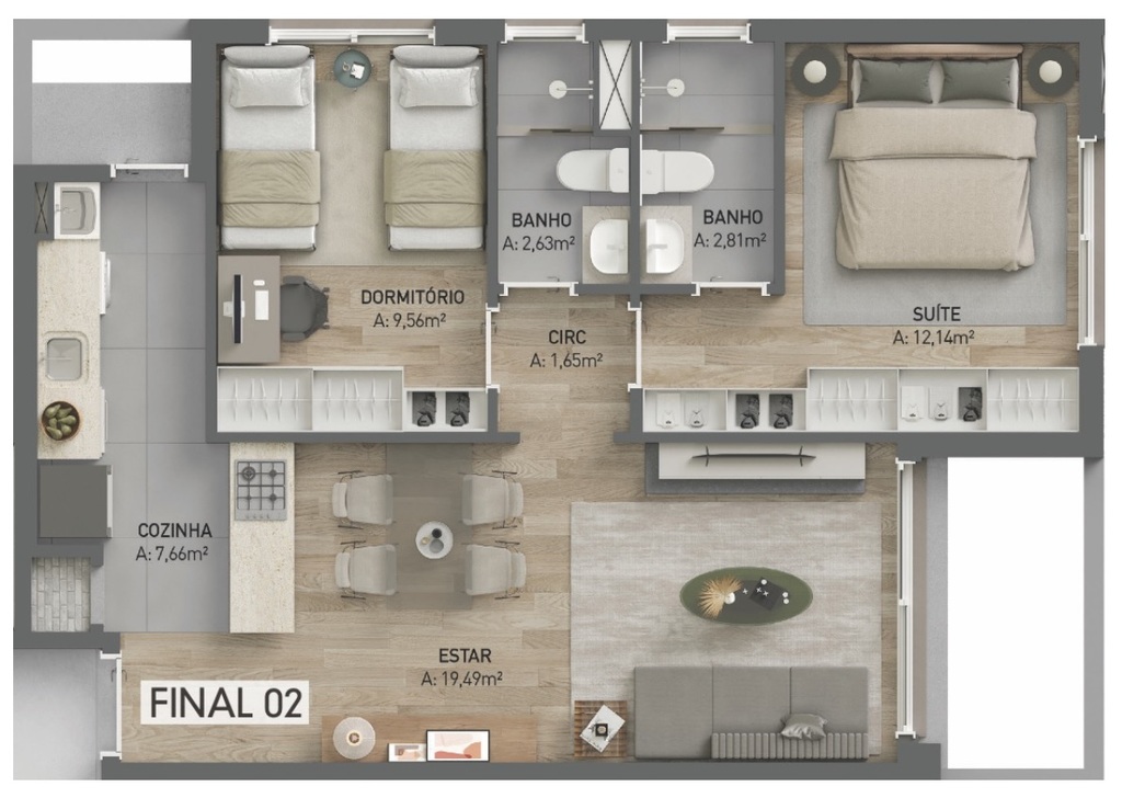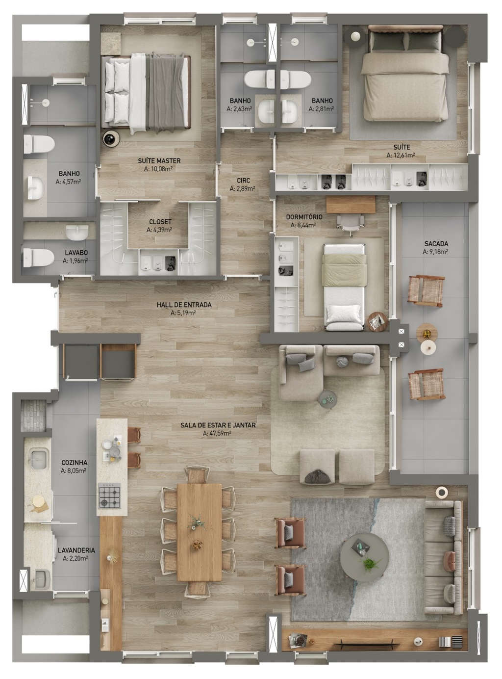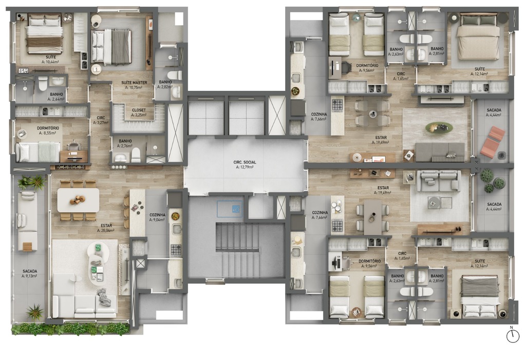 Apartamentos de 02 e 03 dormitórios com suíte. De 67 a 145m².