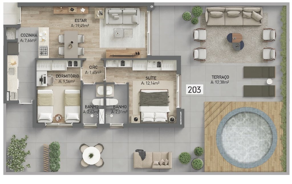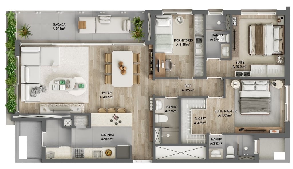 Apartamentos de 02 e 03 dormitórios com suíte.