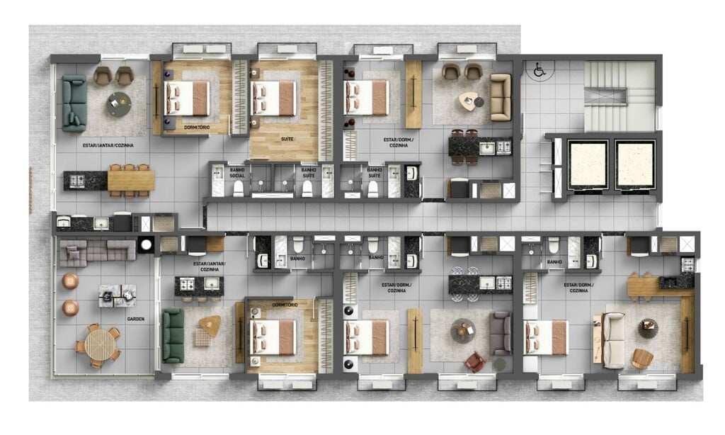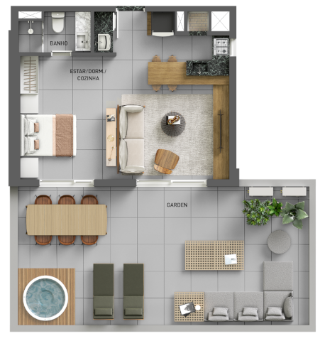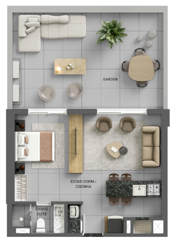 Juntamente com as áreas condominiais de lazer, posicionadas no rooftop, que contam com fitness, espaço gourmet e garden externo.