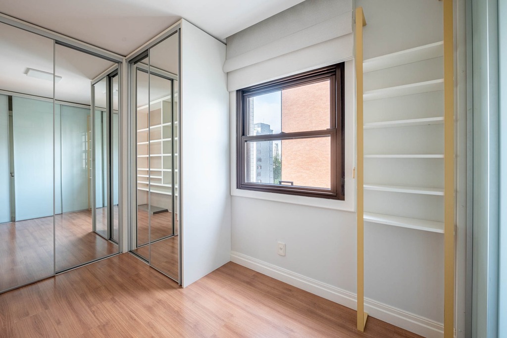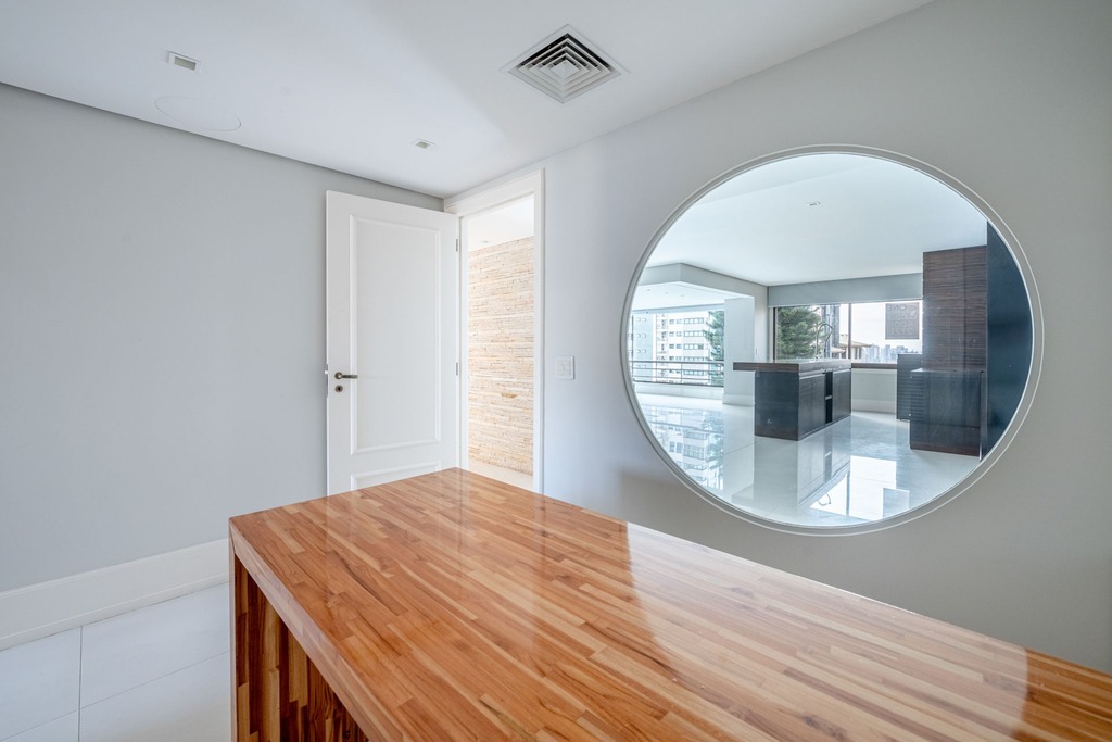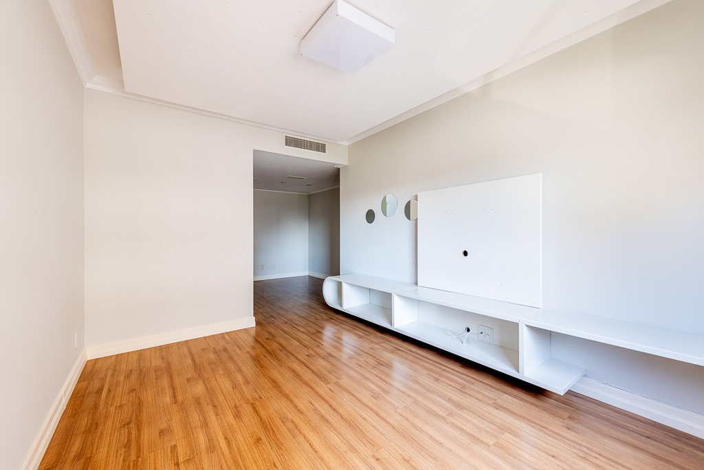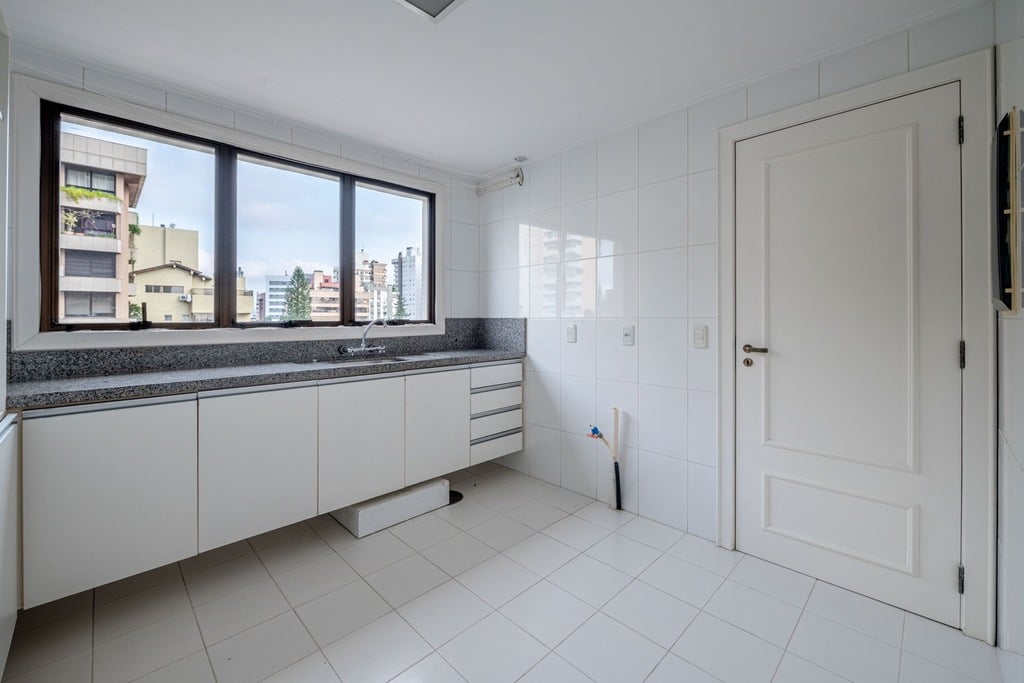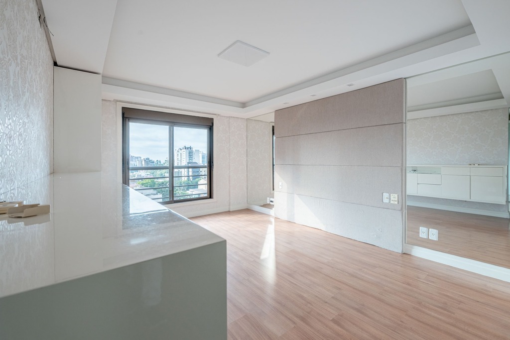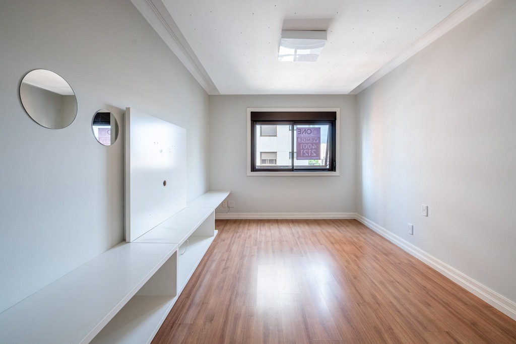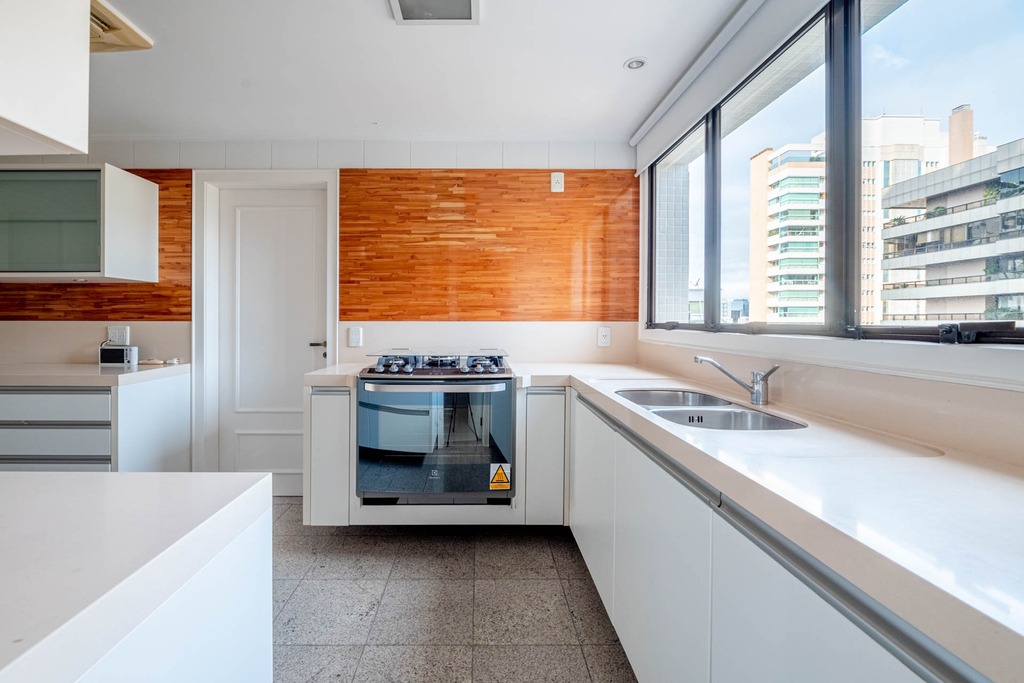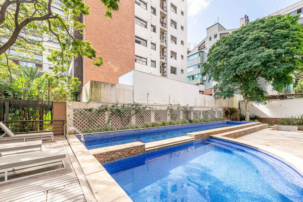 Apartamento 1 por andar, hall privativo, 4 suítes transformadas em 3 amplas suítes, a master com banheiro e closet ele e ela. Living para 4 ambientes com lareira, sala de jantar com espaço gourmet e churrasqueira, copa-cozinha, dependência completa de empregada.