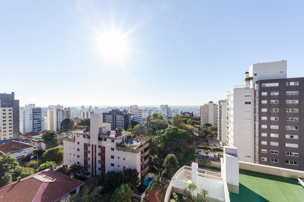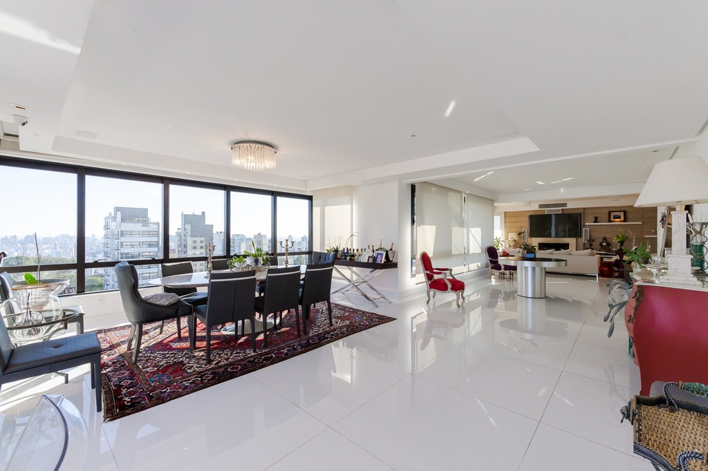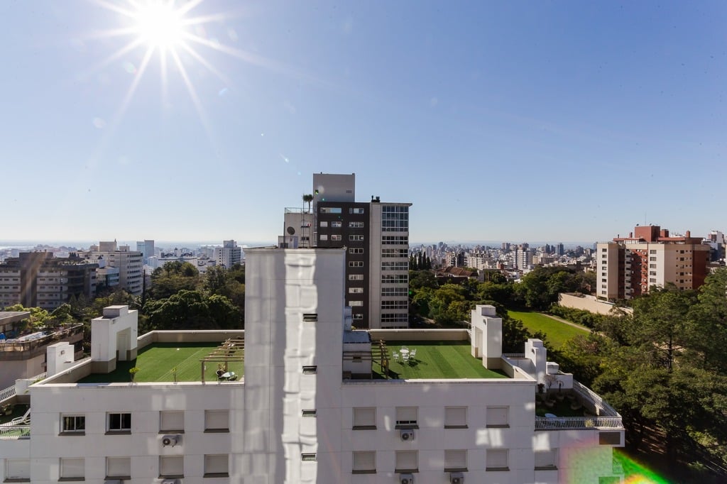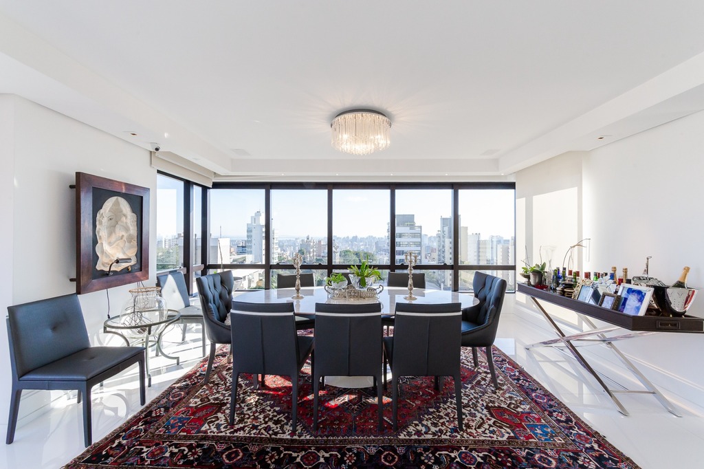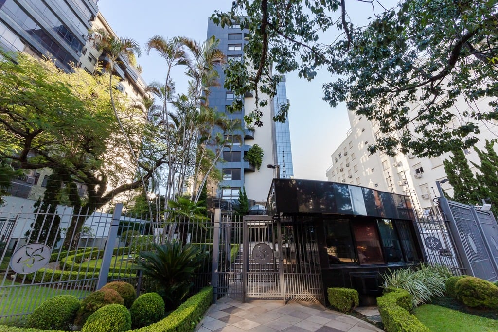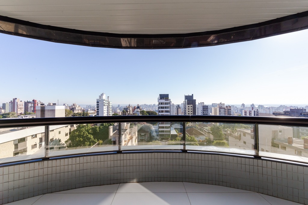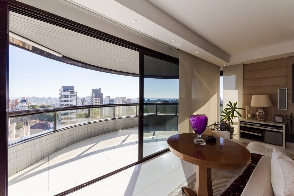 Localizado em um andar único com hall e elevador privativos, o apartamento oferece acesso direto a um amplo living voltado para o leste, com uma sacada que proporciona uma vista deslumbrante do pôr do sol sobre o Guaíba e uma linda vista da cidade.