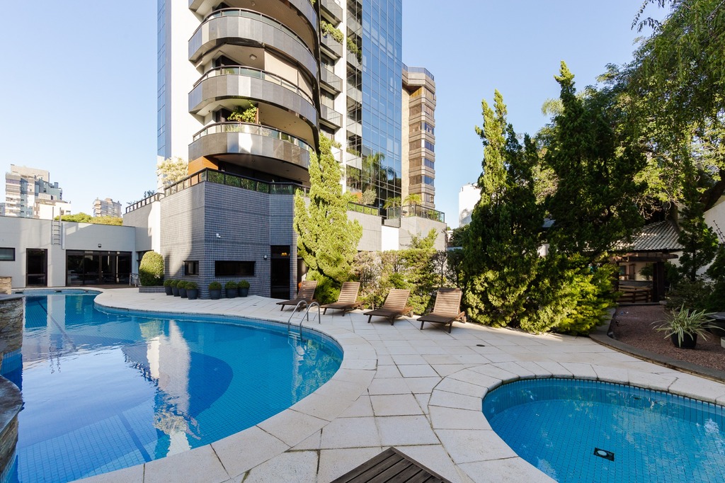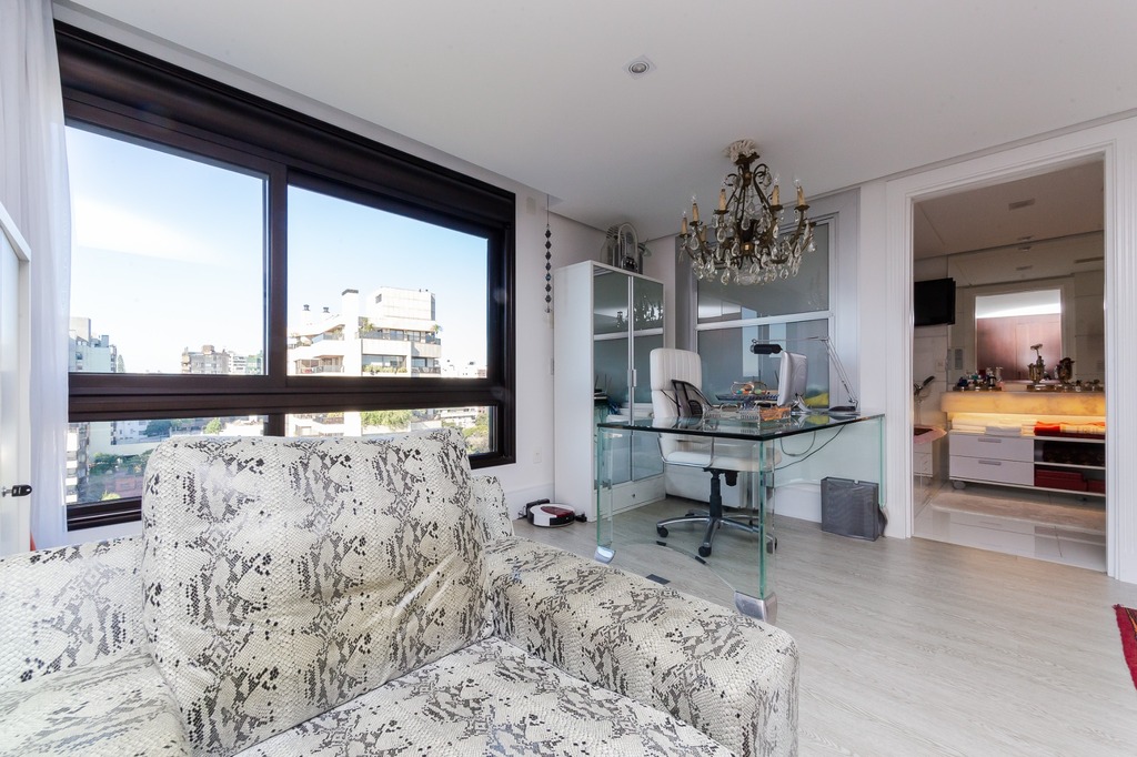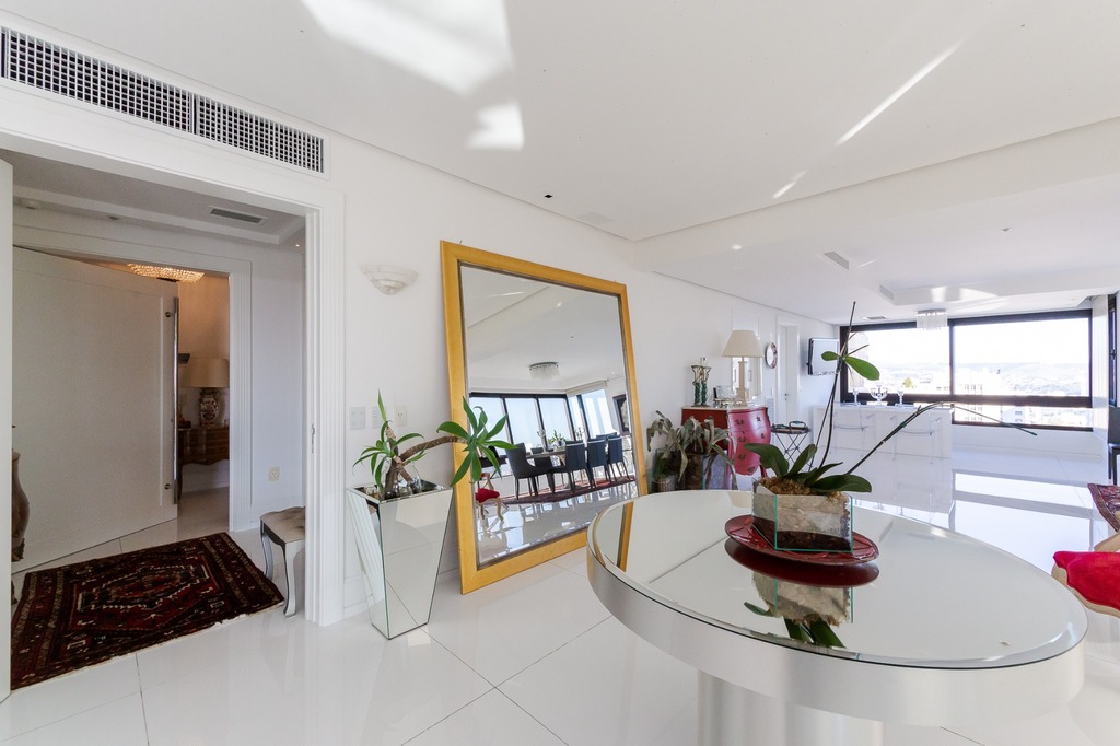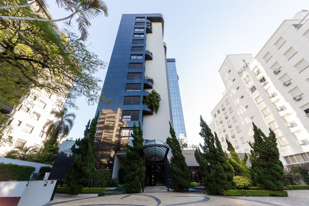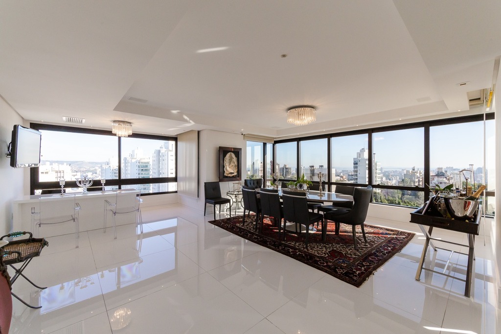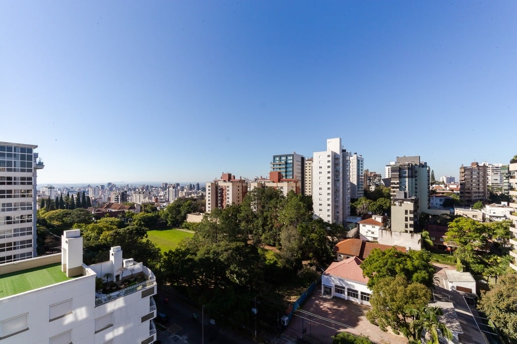 Localizado em um andar único com hall e elevador privativos, o apartamento oferece acesso direto a um amplo living voltado para o leste, com uma sacada que proporciona uma vista deslumbrante do pôr do sol sobre o Guaíba e uma linda vista da cidade.