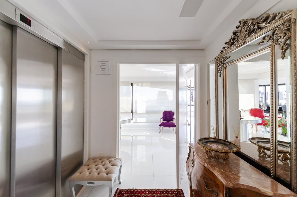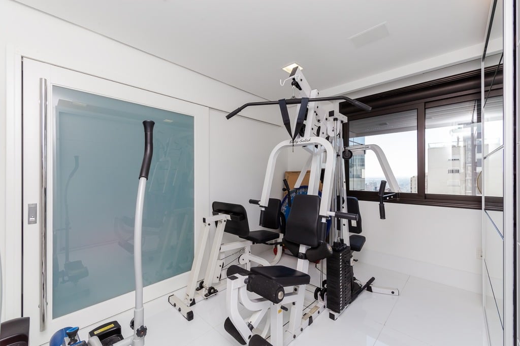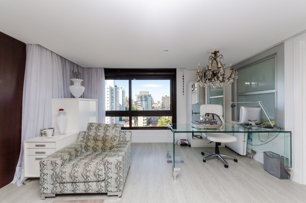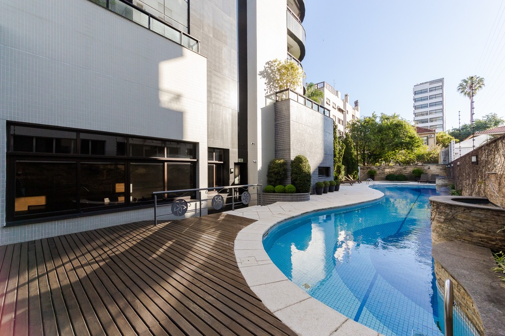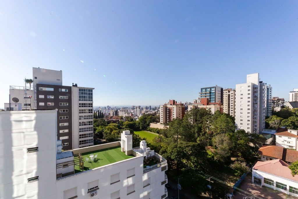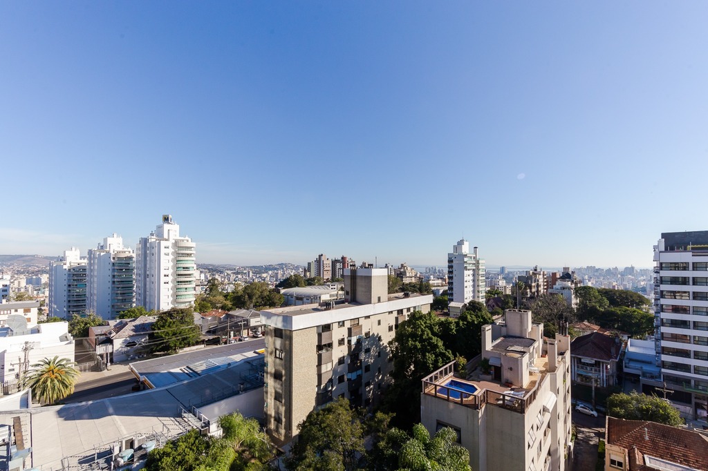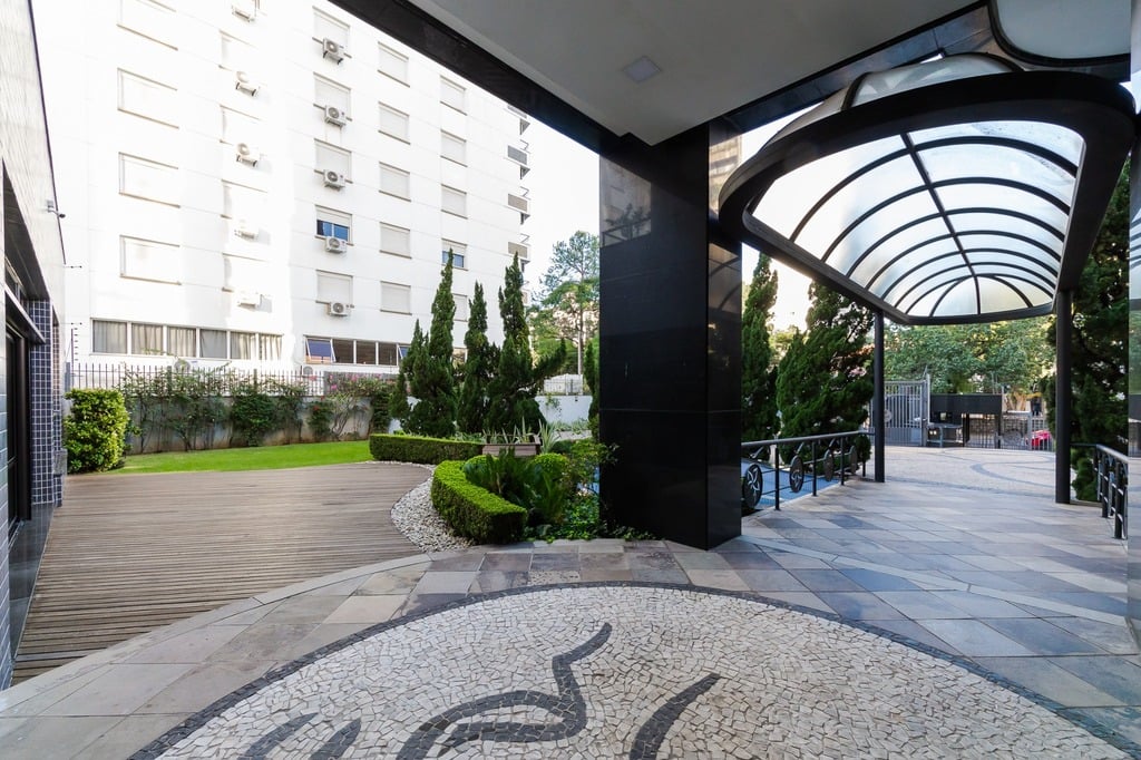 Localizado em um andar único com hall e elevador privativos, o apartamento oferece acesso direto a um amplo living voltado para o leste, com uma sacada que proporciona uma vista deslumbrante do pôr do sol sobre o Guaíba e uma linda vista da cidade.