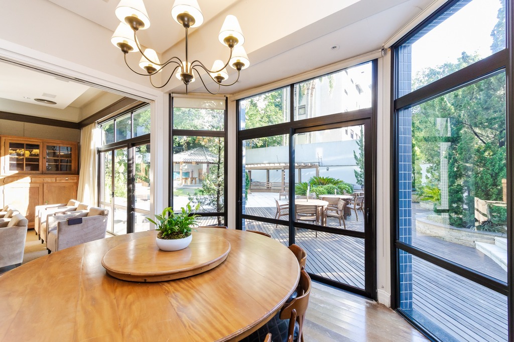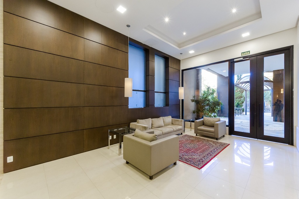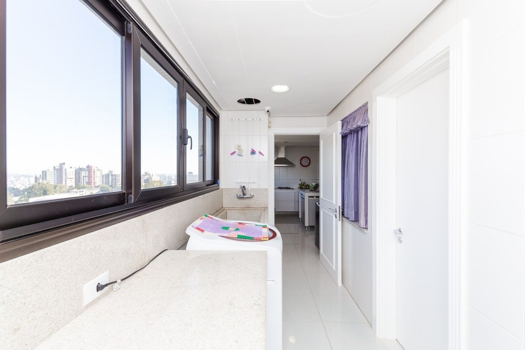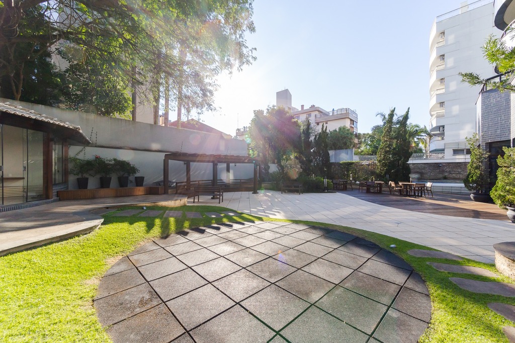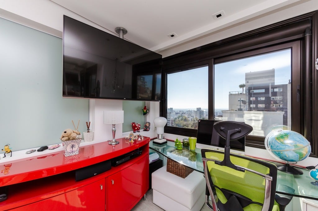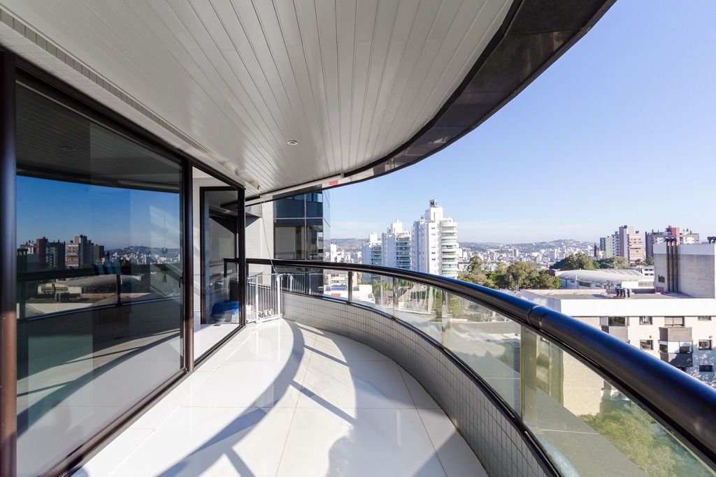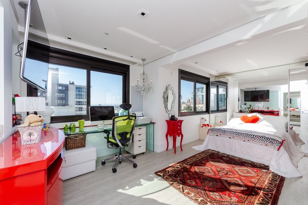 Localizado em um andar único com hall e elevador privativos, o apartamento oferece acesso direto a um amplo living voltado para o leste, com uma sacada que proporciona uma vista deslumbrante do pôr do sol sobre o Guaíba e uma linda vista da cidade.