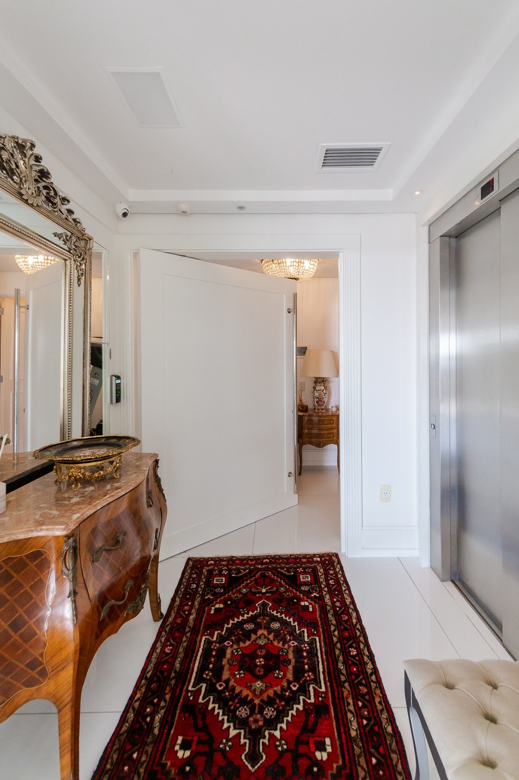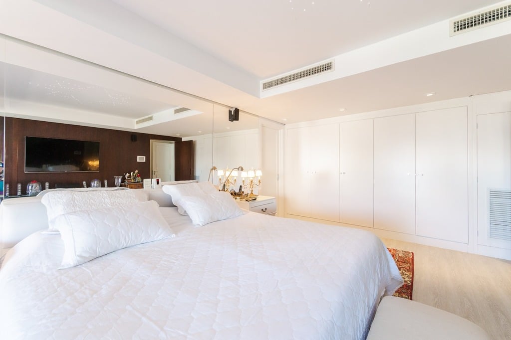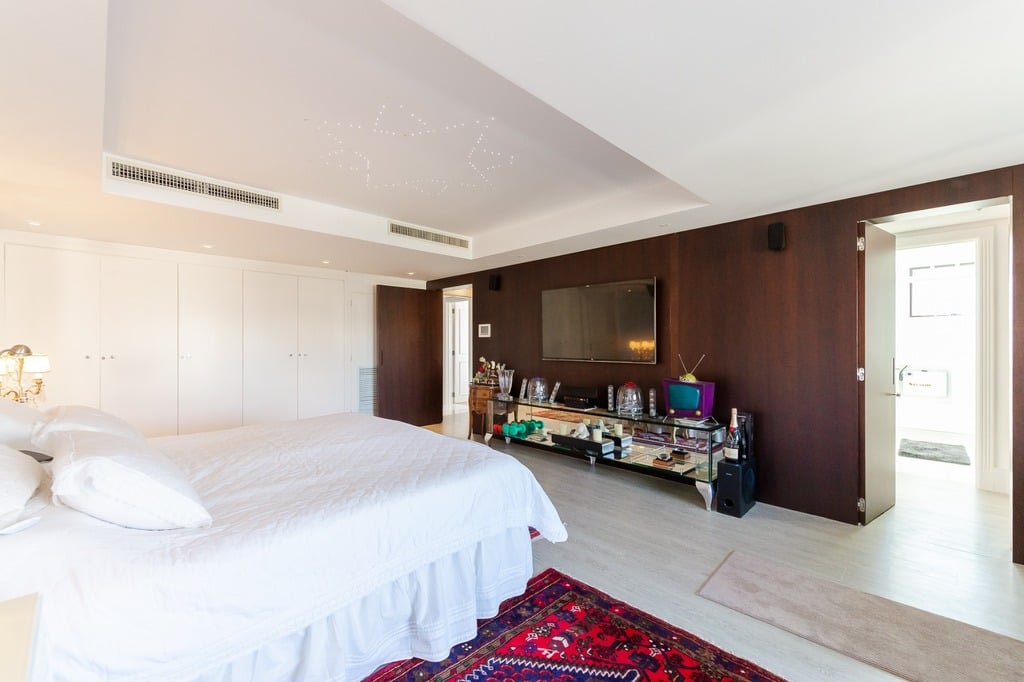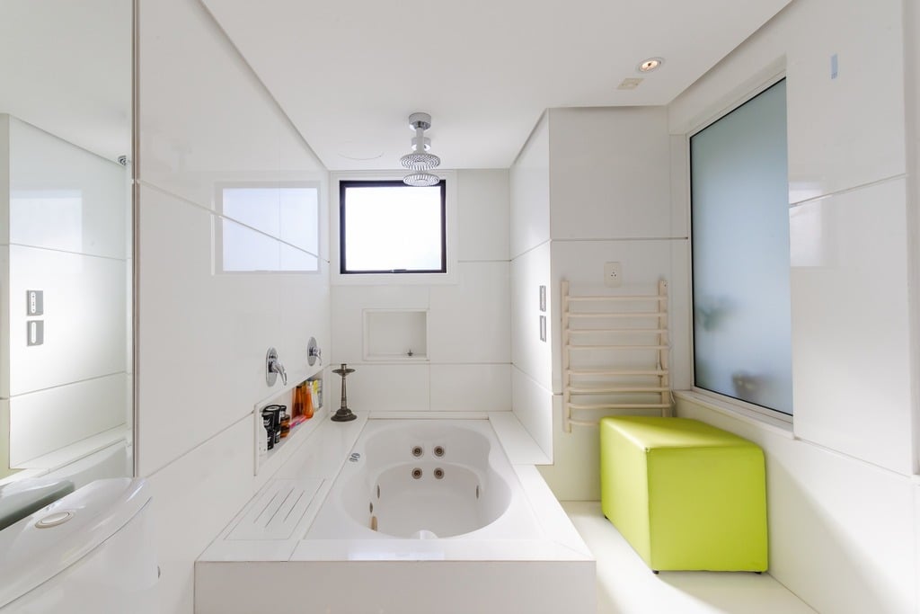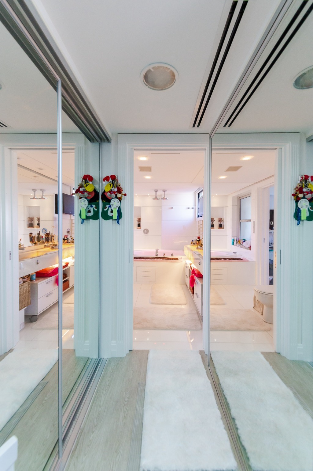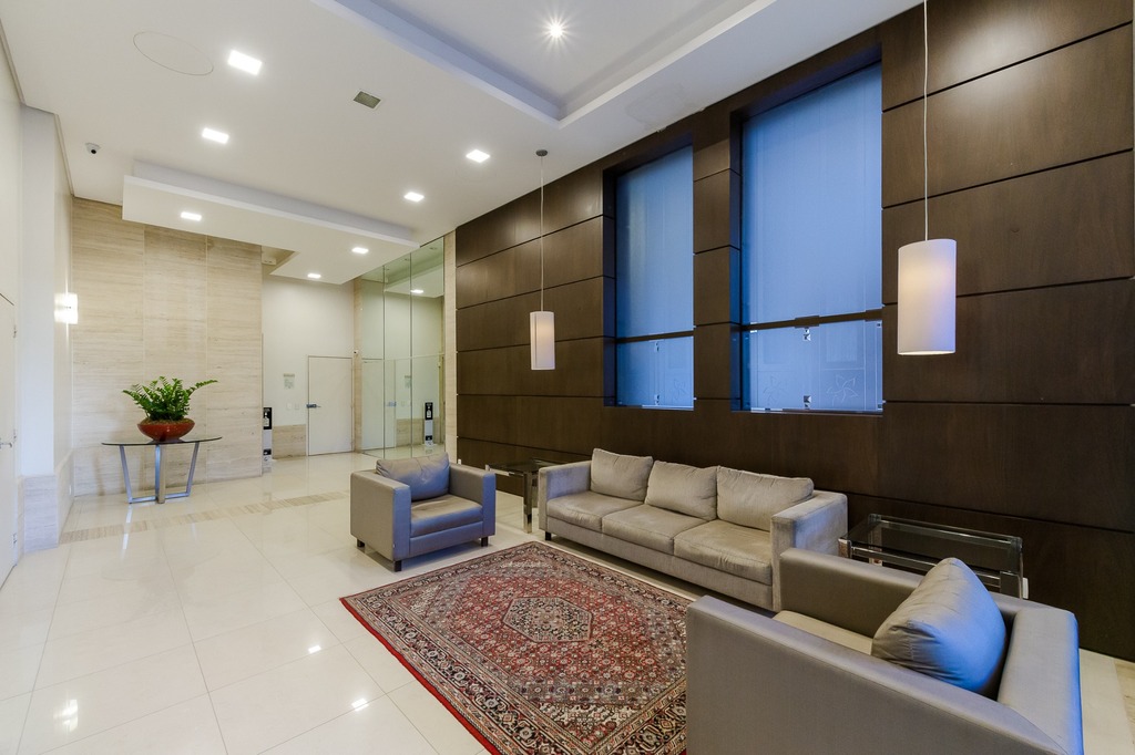 O apartamento está equipado com um sistema de automação para cortinas, persianas e iluminação, além de ar condicionado inteligente em todos os ambientes.