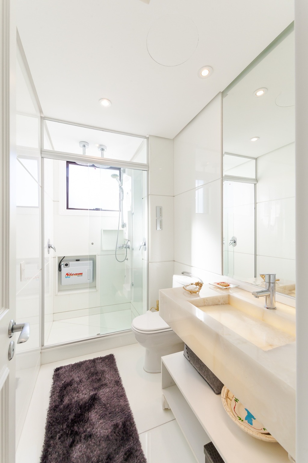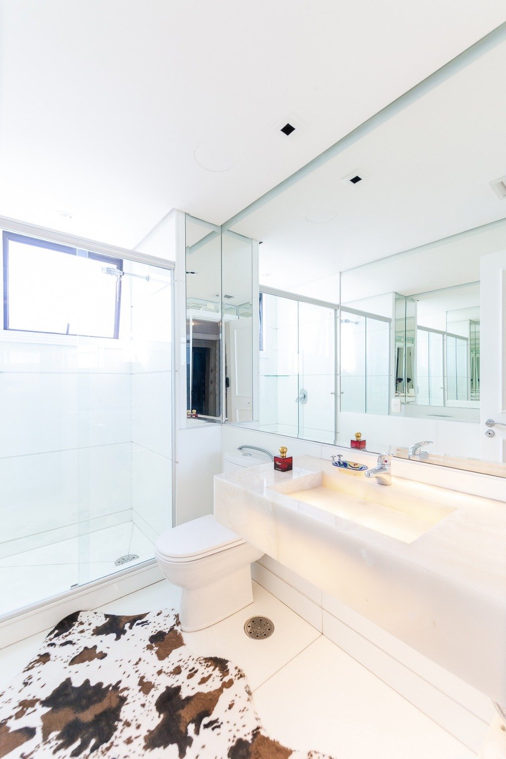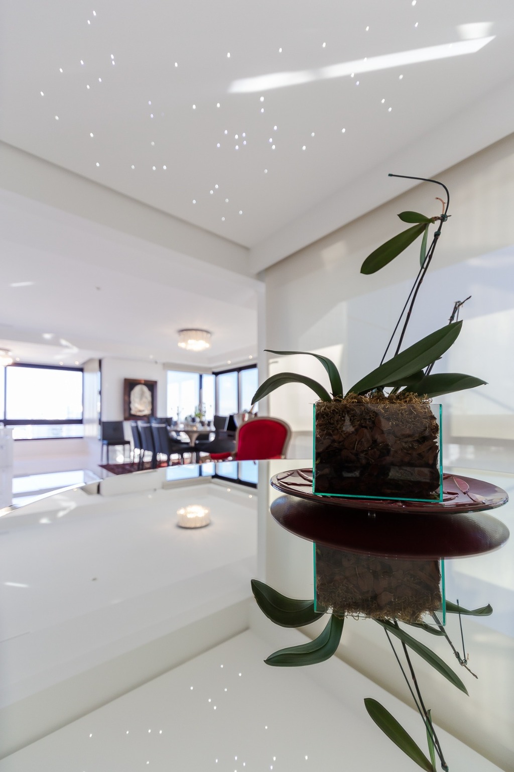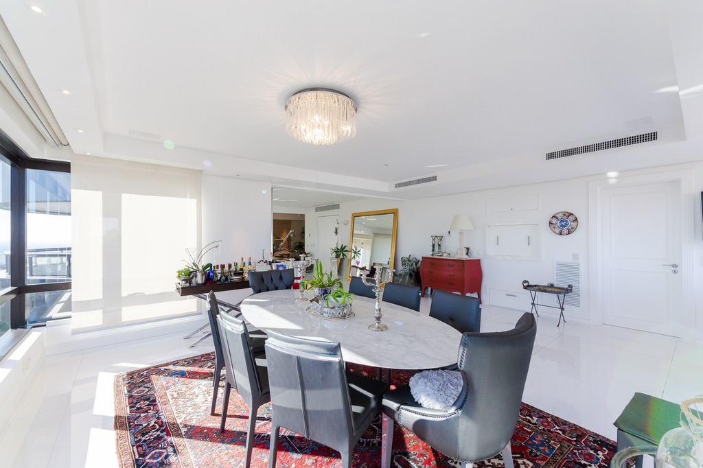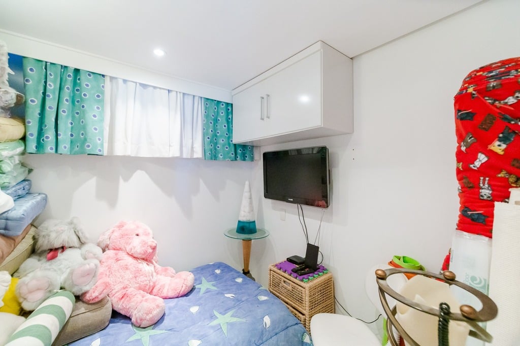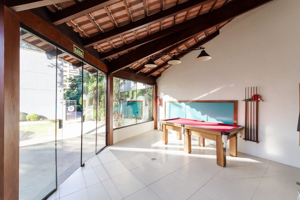 O apartamento está equipado com um sistema de automação para cortinas, persianas e iluminação, além de ar condicionado inteligente em todos os ambientes.