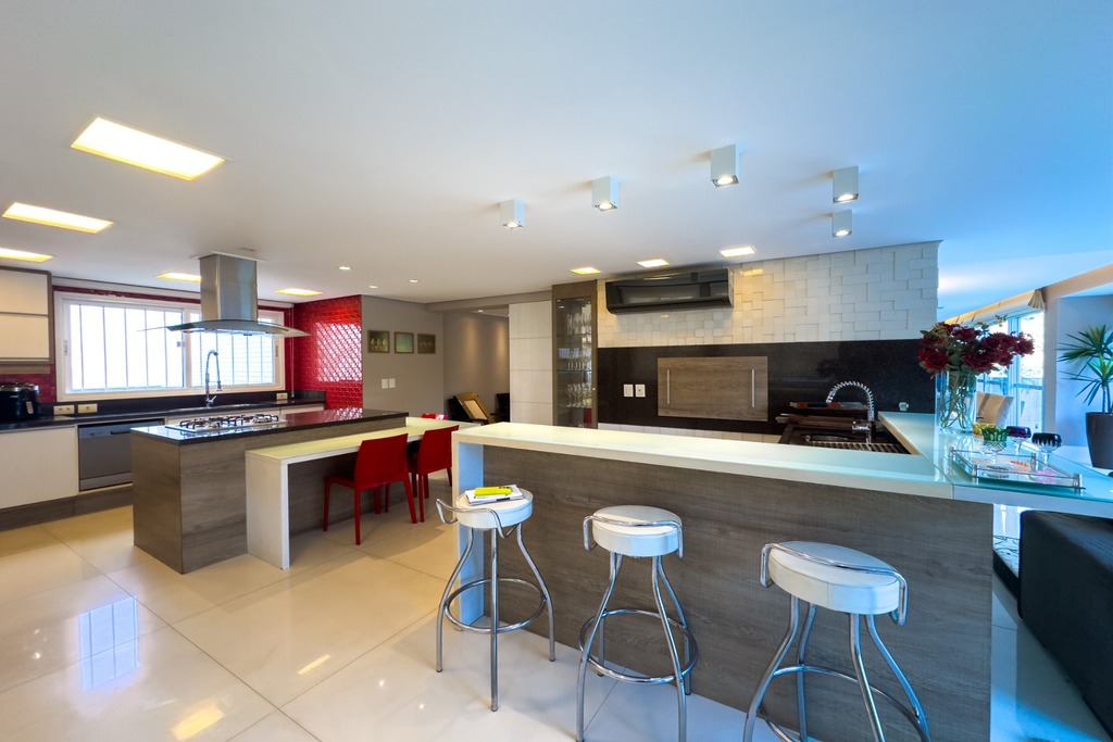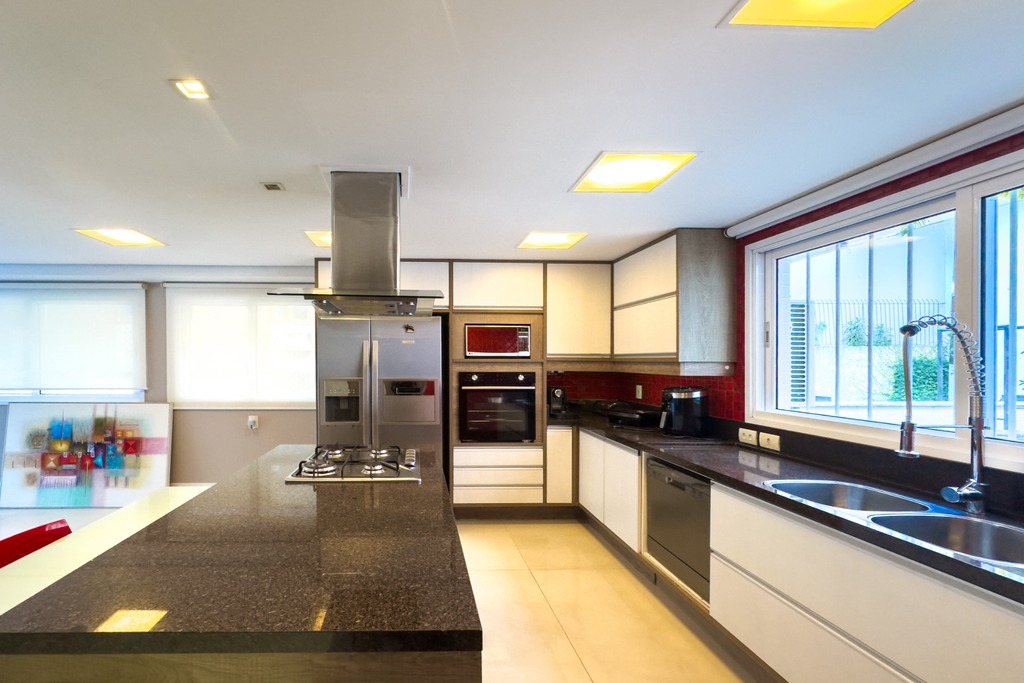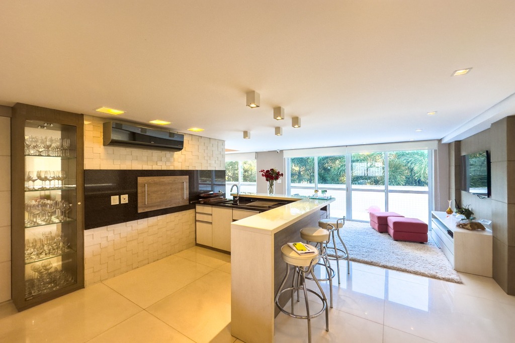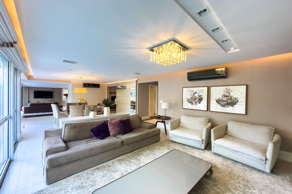 São 3 amplas suítes, sendo 2 com terraço, living, 3 ambientes com lavabo e lareira, linda área gourmet com churrasqueira, cozinha americana com ilha, dependência transformada em gabinete e banheiro auxiliar.