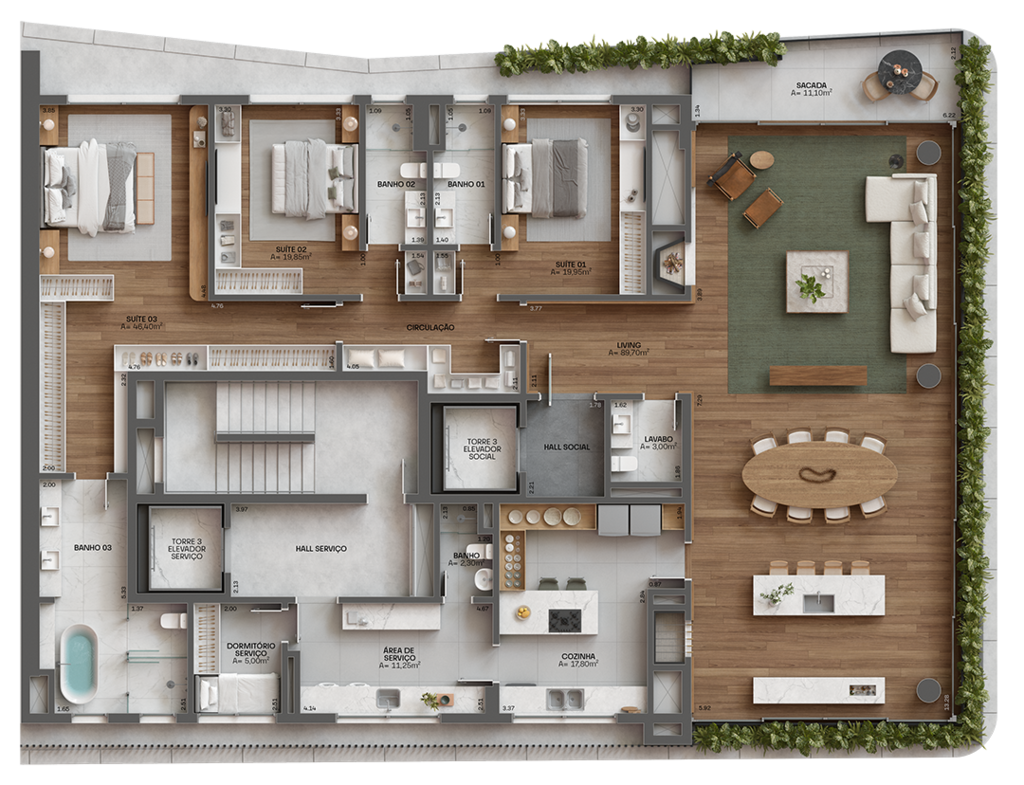 3 Suítes