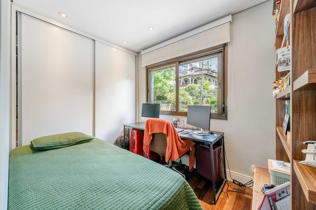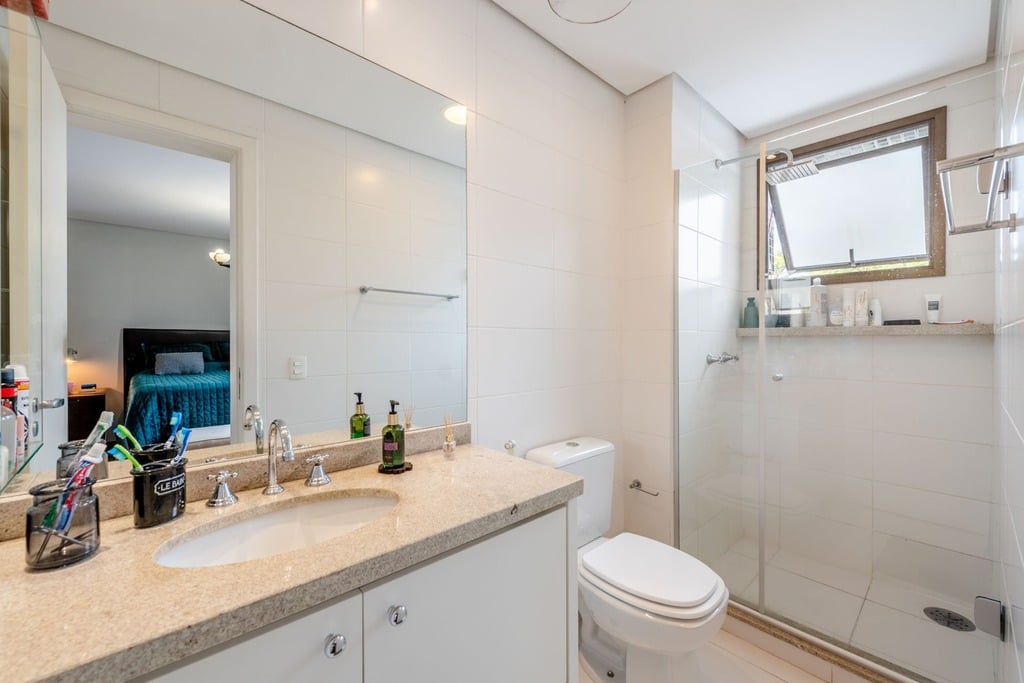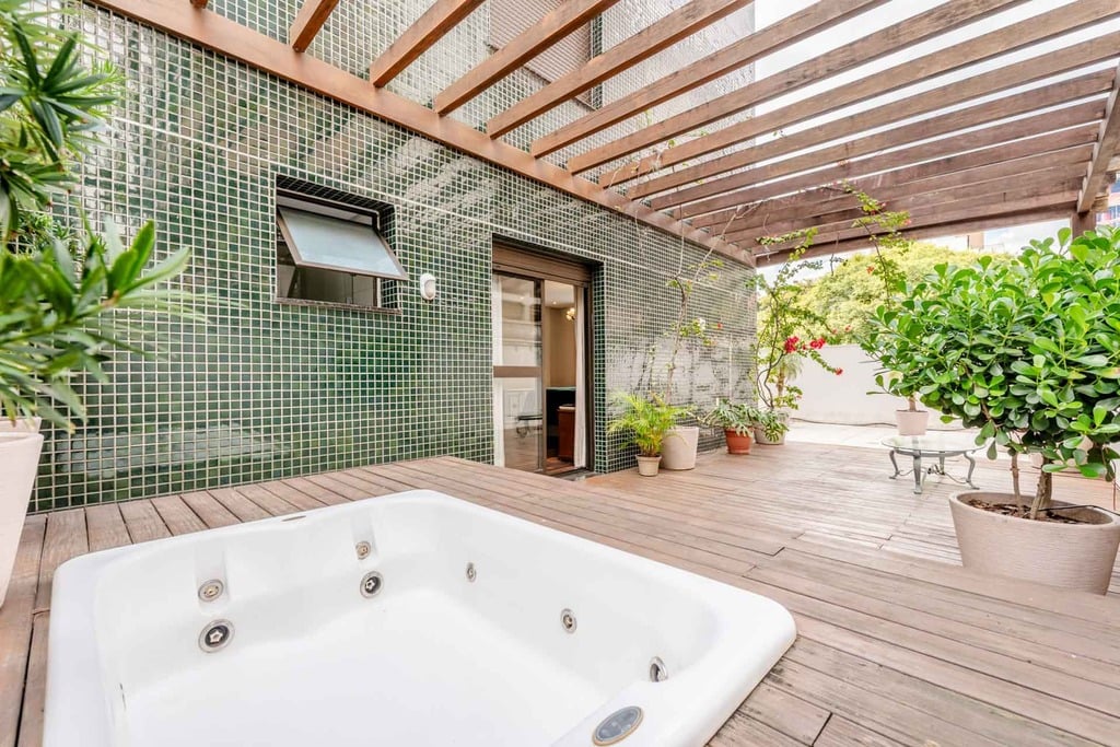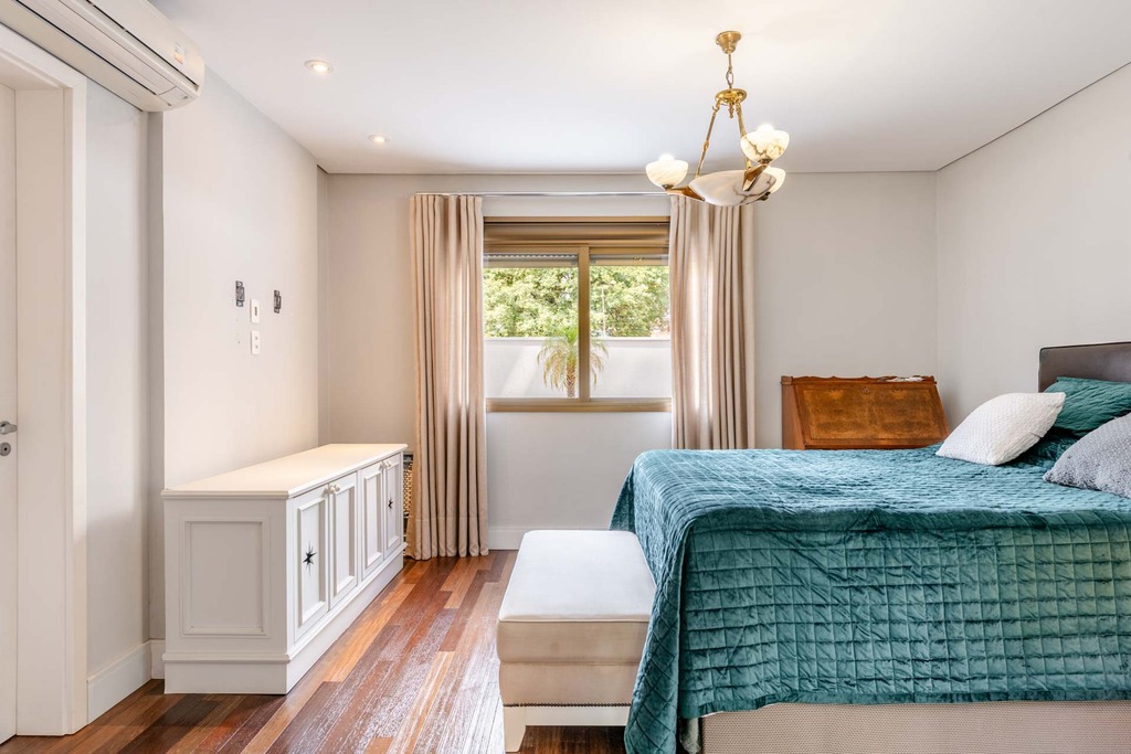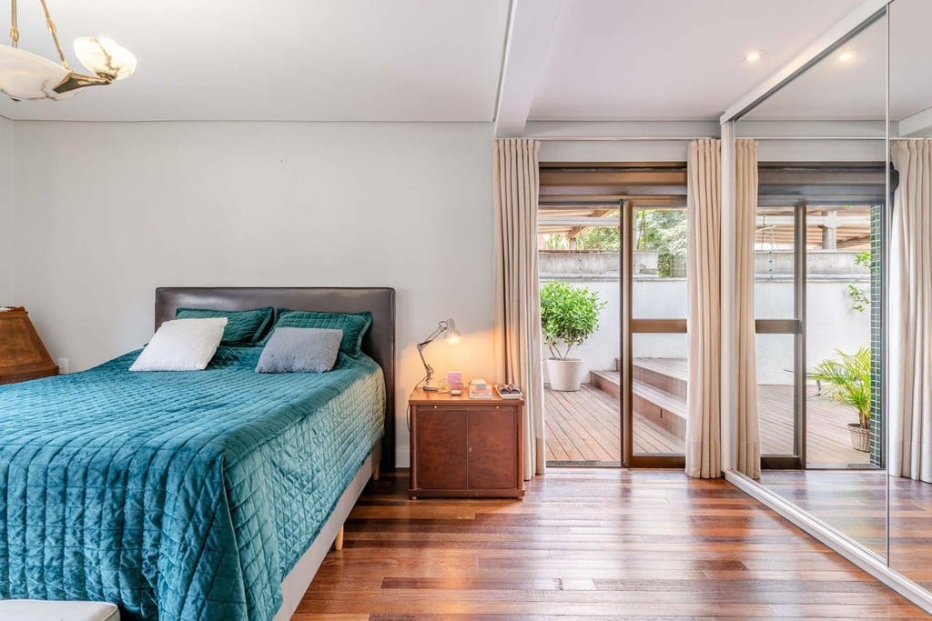 Originalmente com 3 dormitórios, foi transformado em 2 suítes, para privilegiar uma ampla suíte máster com terraço privativo e jacuzzi.