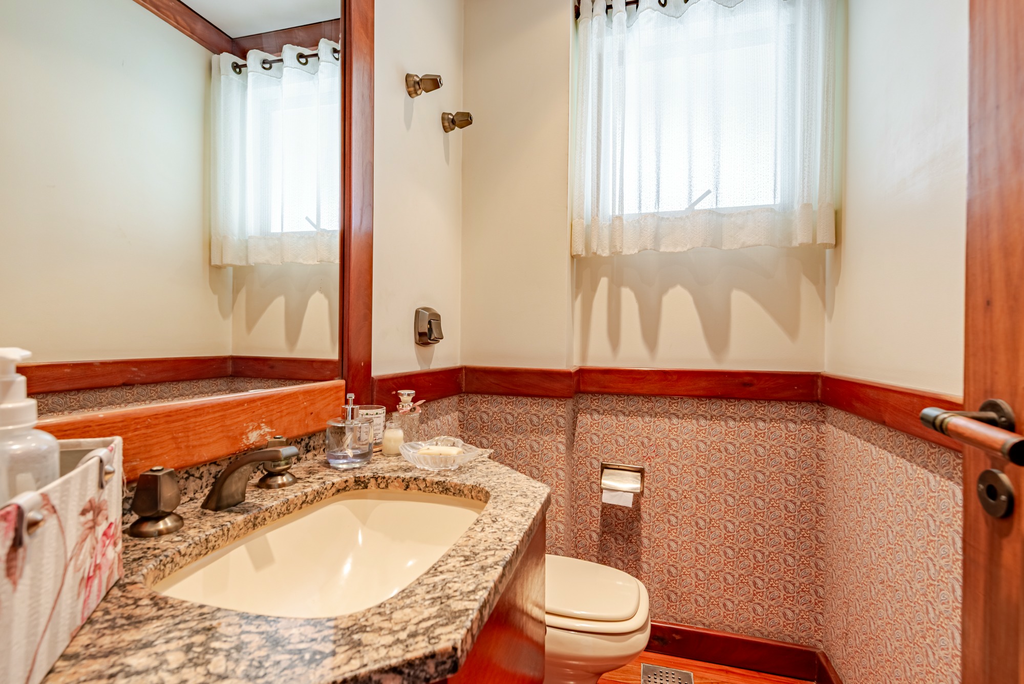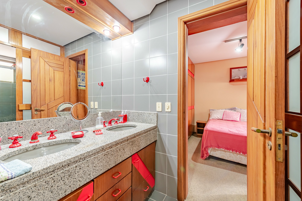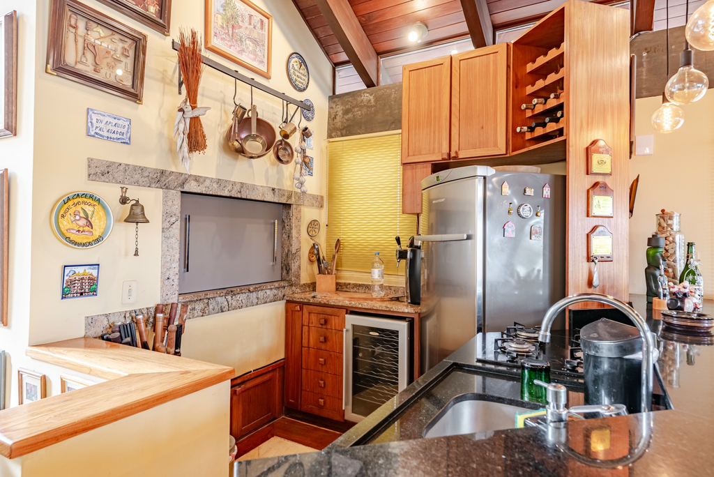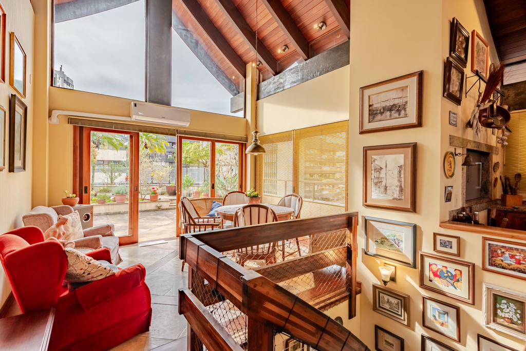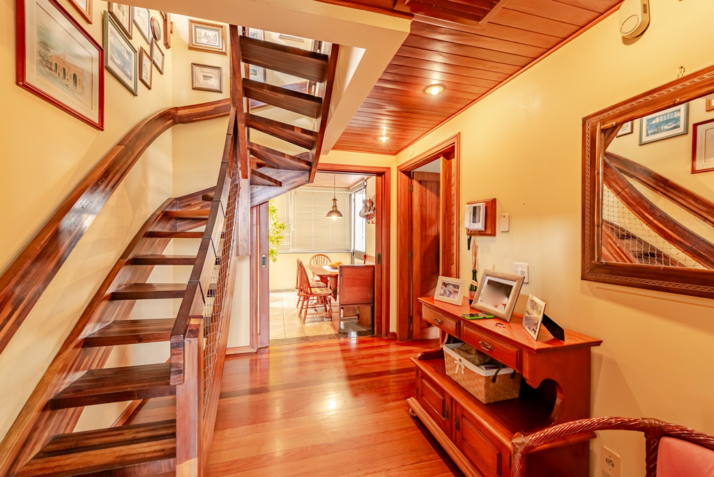 São 3 suítes, sendo a máster com closet amplo e duas suítes no formato americano. Piso em tabuão em toda a área social e escada interna de madeira.