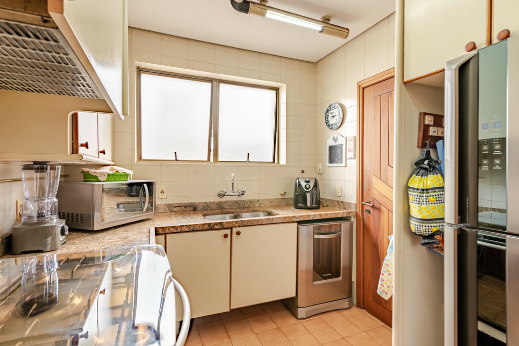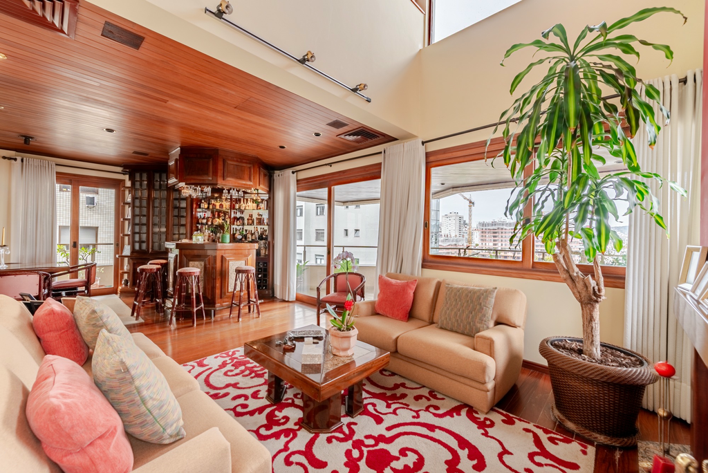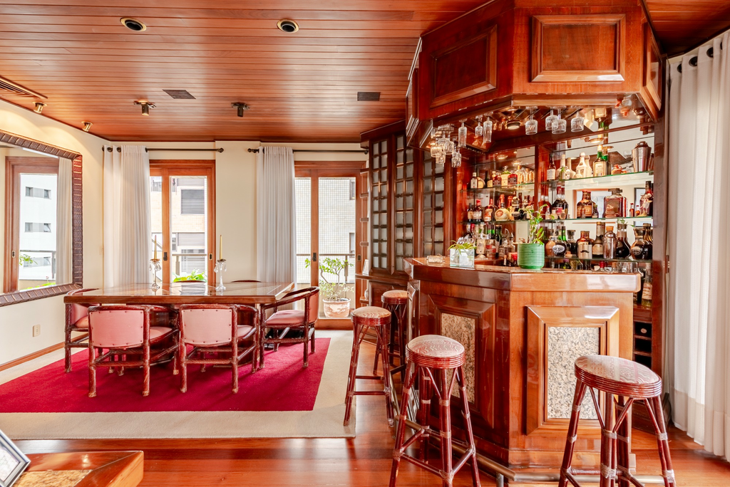 O imóvel conta com elevador de acesso direto ao hall privativo, sala de estar com lareira e sacadão, sala de jantar, lavabo, cozinha, área de serviço e dependência de empregada.