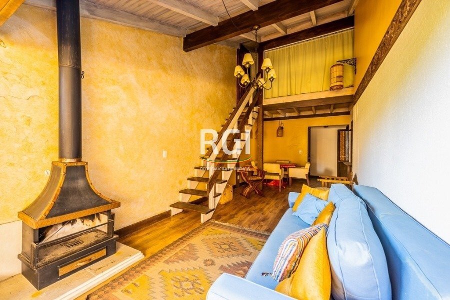 De frente, com 2 dormitórios (1 suíte master com closet), living com 3 ambientes, sala com lareira, mezanino, banheiro social, cozinha americana, área de serviço, dependência completa, terraço, vista, churrasqueira, banheira de hidromassagem.