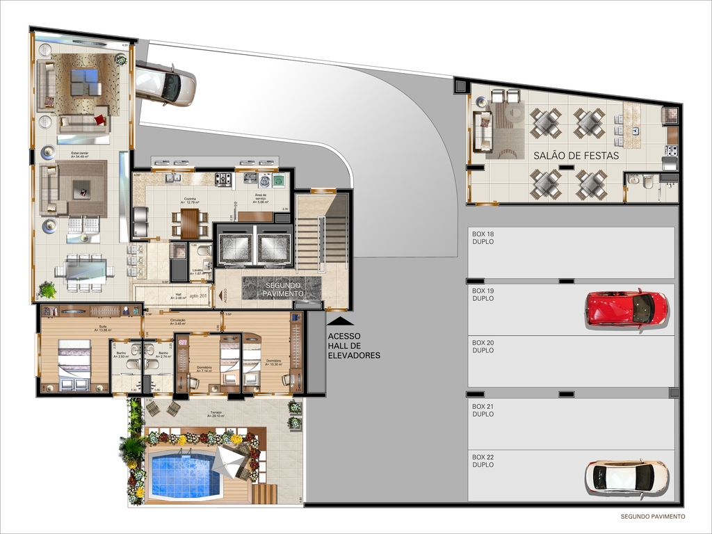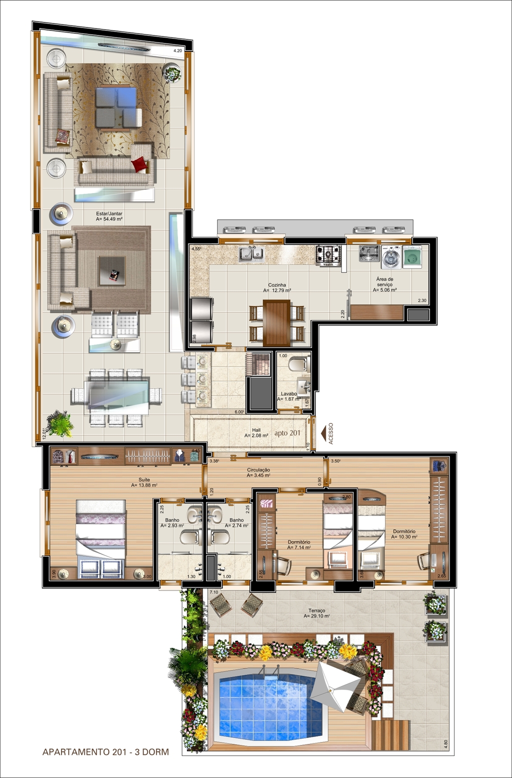 Apartamento GARDEN de 169,23 m2 com 3 dormitórios, sendo 1 suíte.